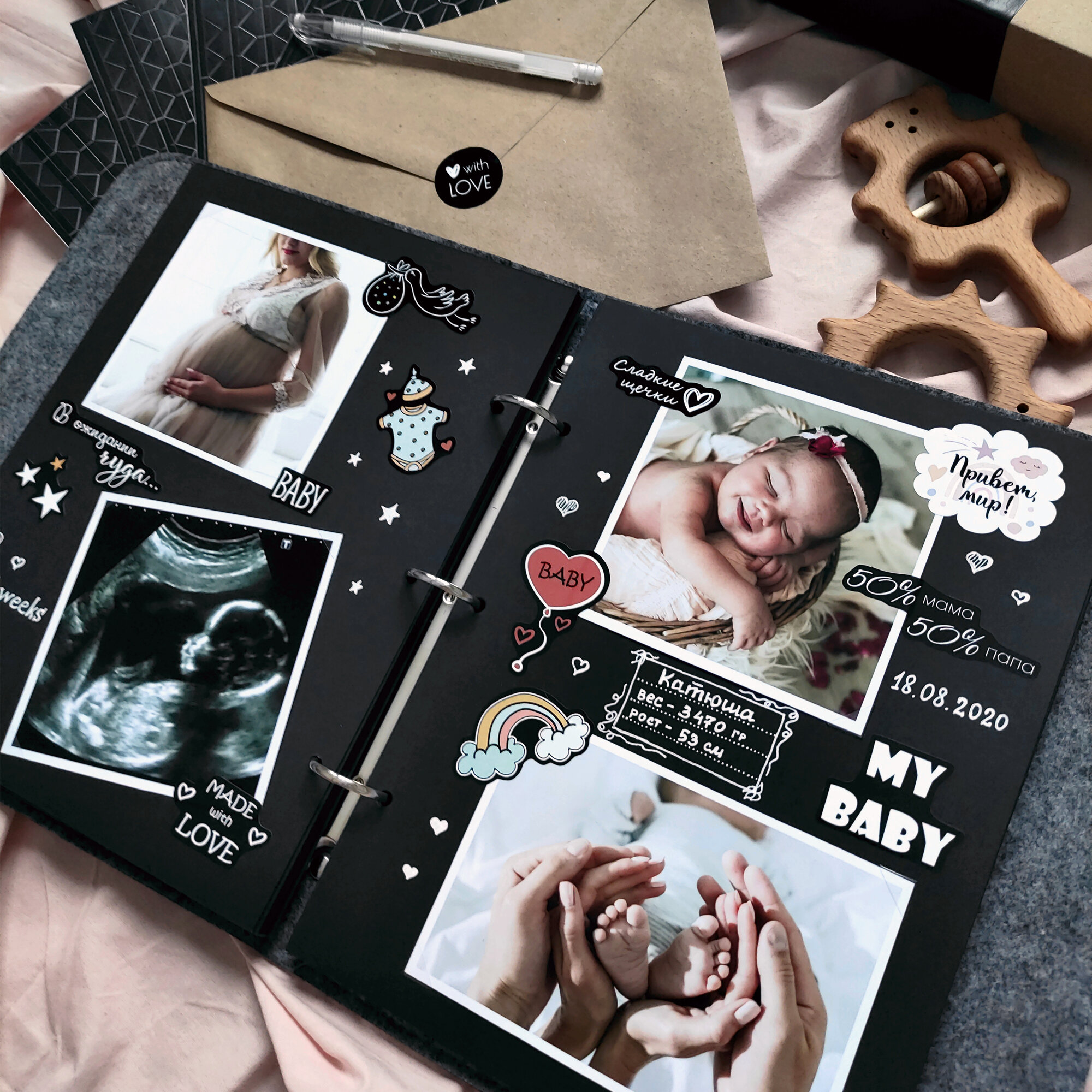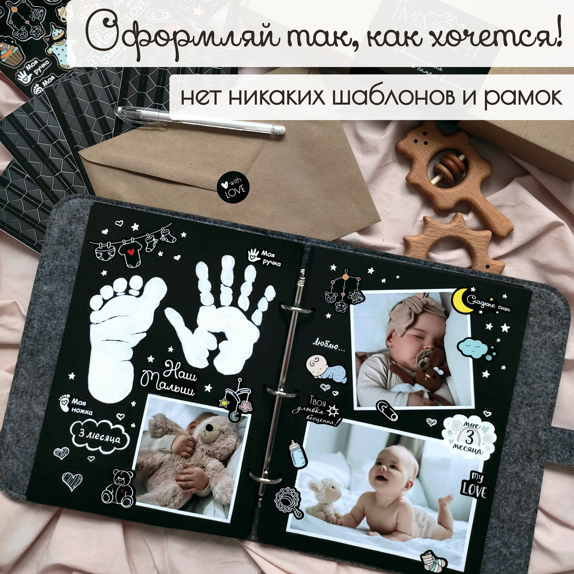 Сохранить"Детский фотоальбом Memories Life с наклейками серый с вышивкой рисунка радуги" интересное: