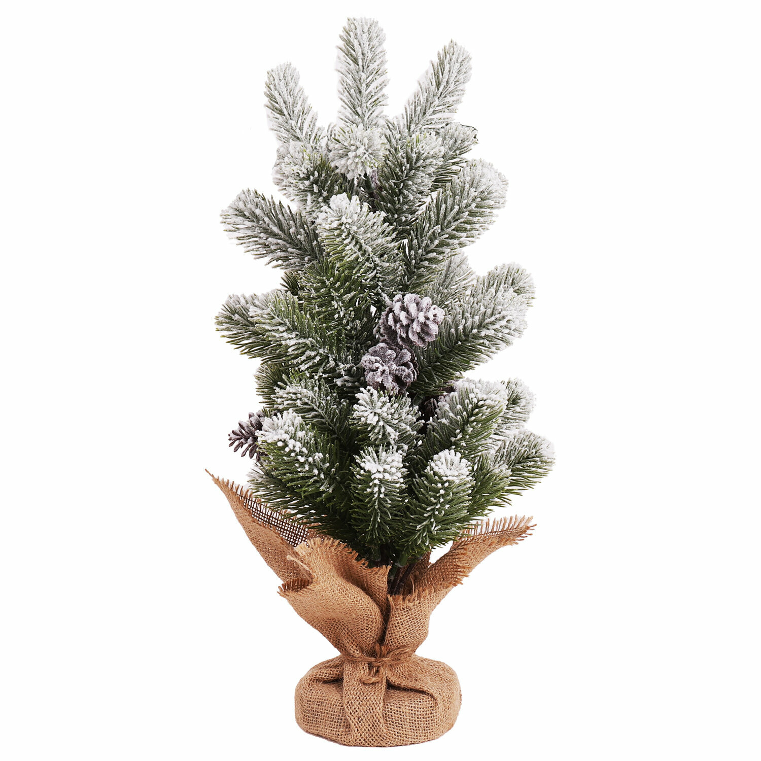 Елка искусственная новогодняя настольная 50 см, заснеженная, с шишками, литой ПЭТ