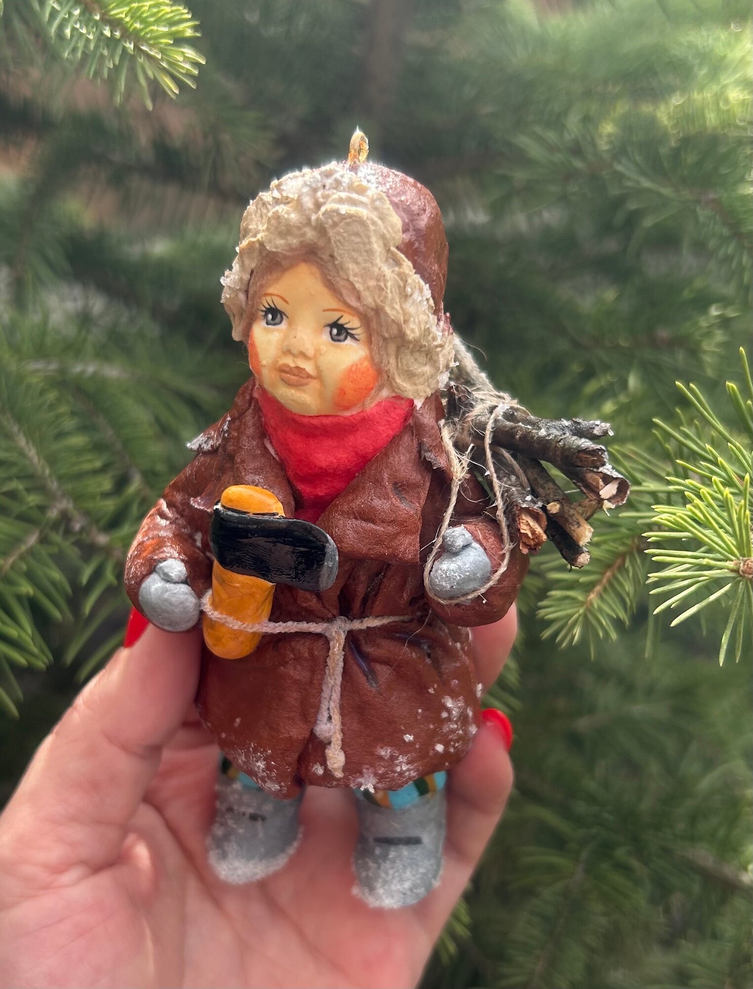 Ватная елочная игрушка - мальчик с хворостом интересное: