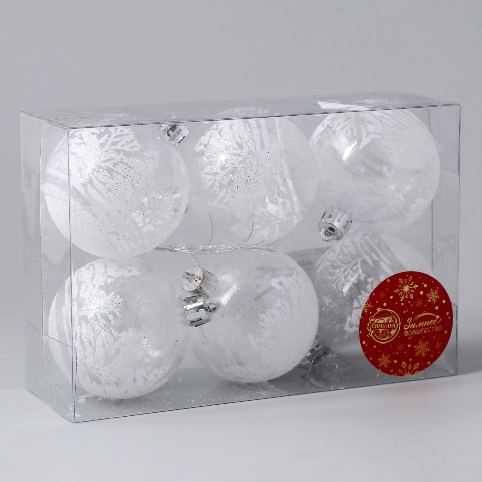 Набор шаров пластик d-6 см, 6 шт "Изморозь" зимний лес, белый