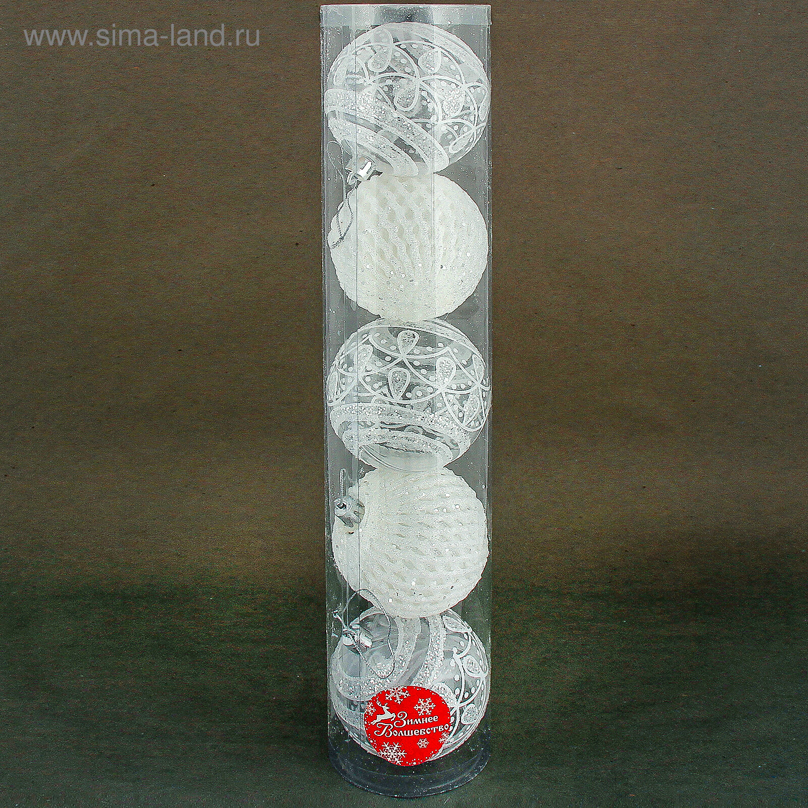 Купить Набор шаров пластик d-8 см. 5 шт "Изморозь" белый 2131343