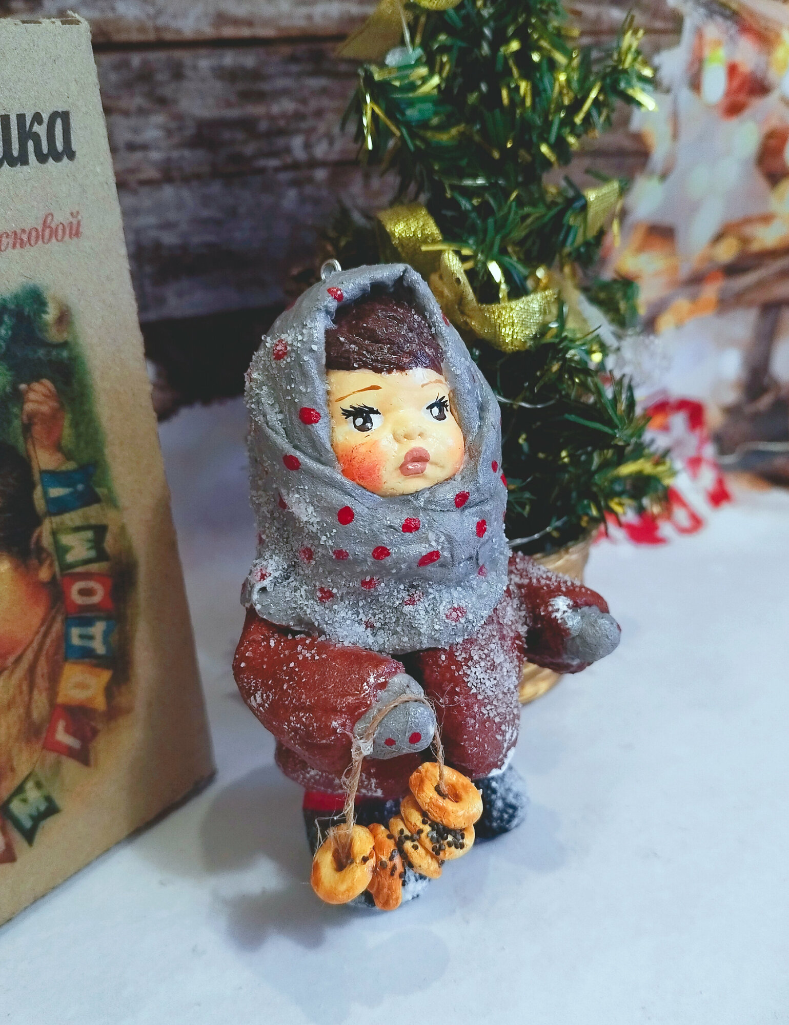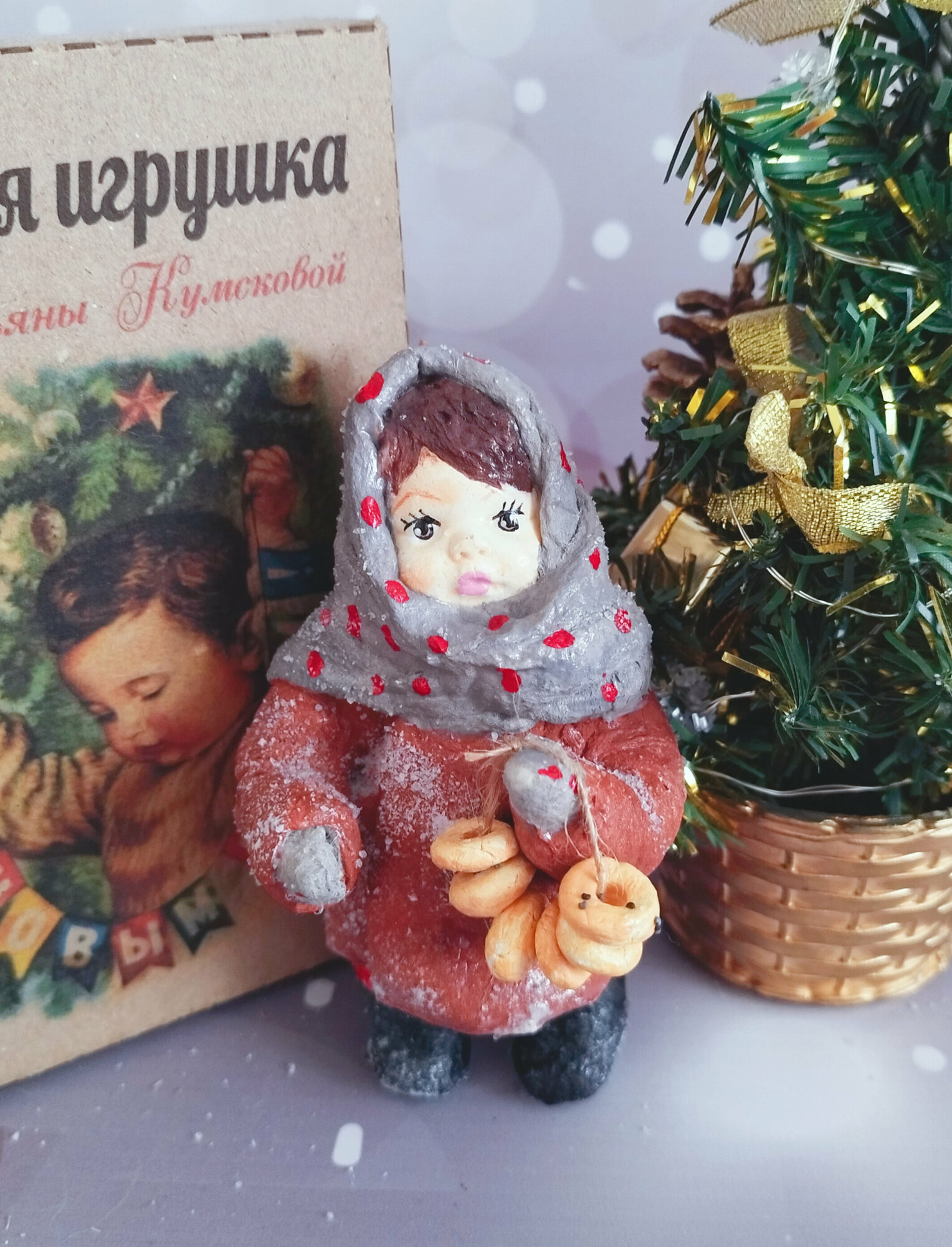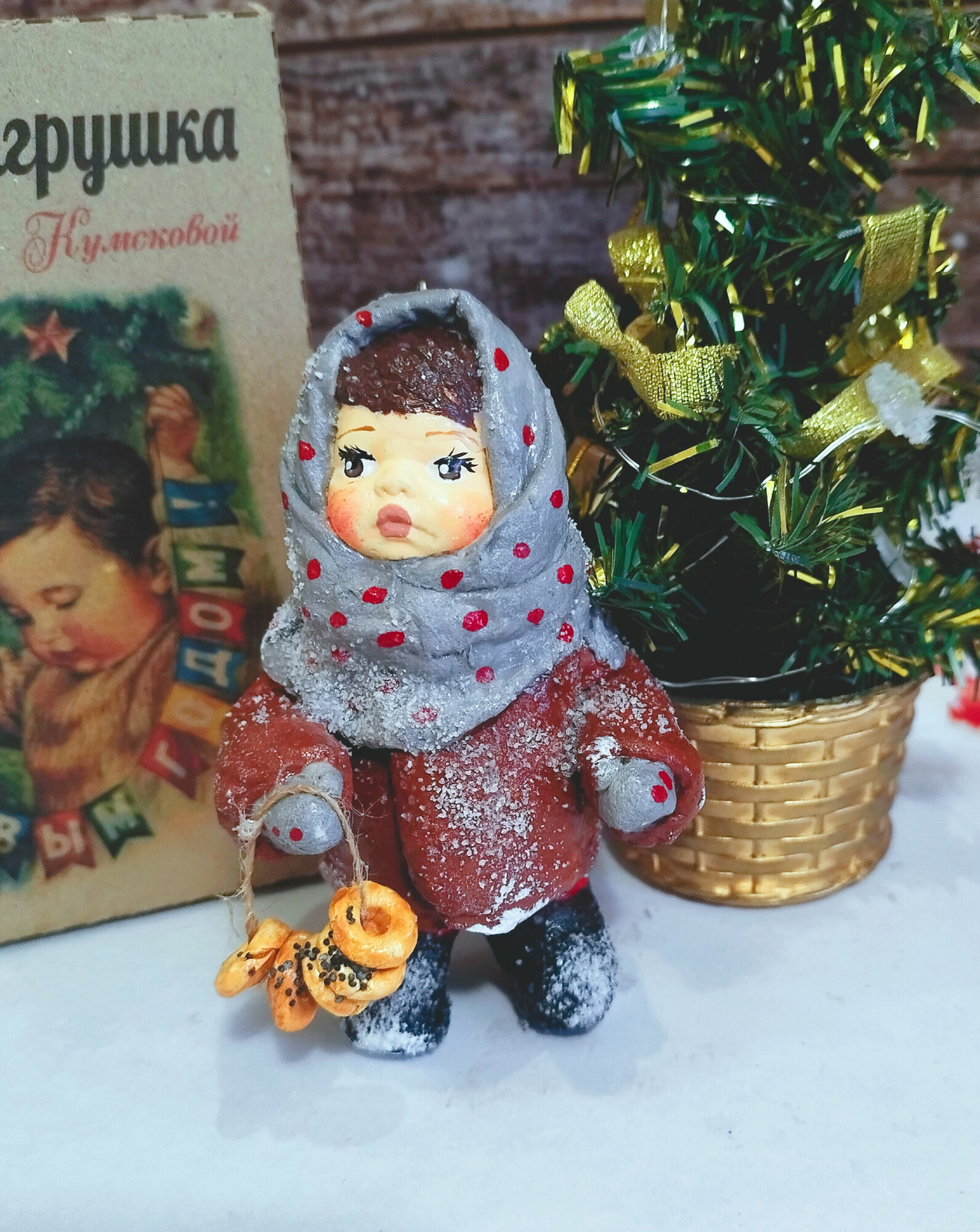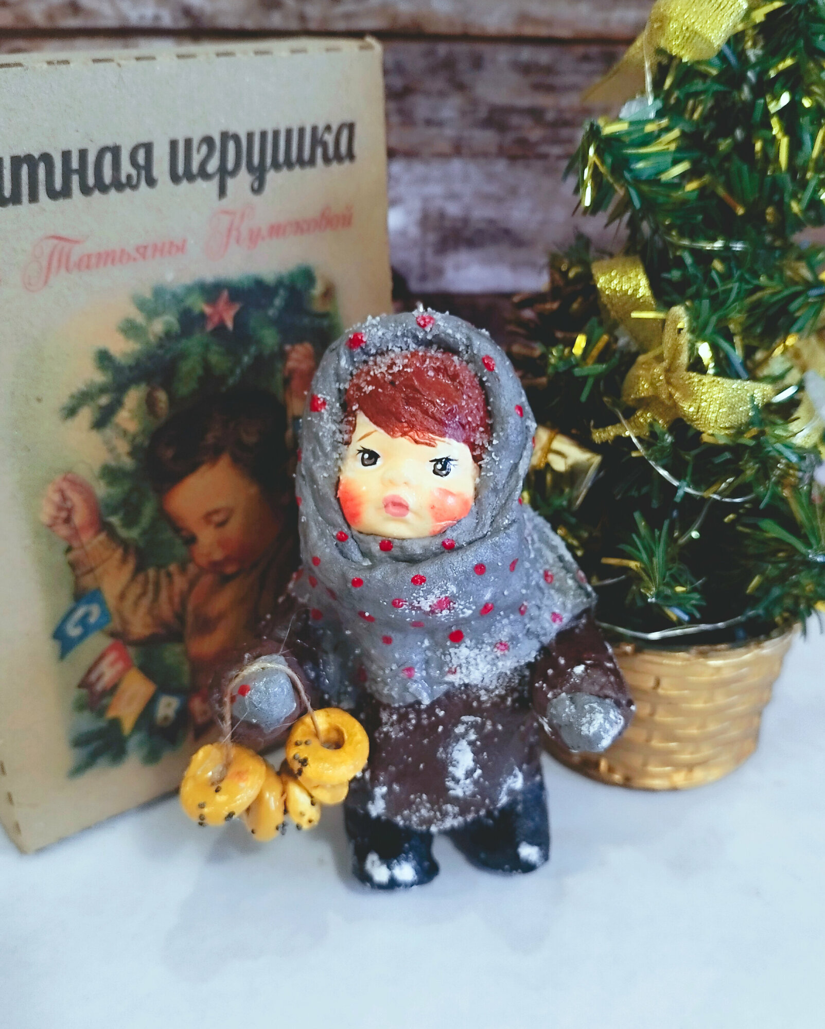 Ватная елочная игрушка - девочка с баранками интересное: