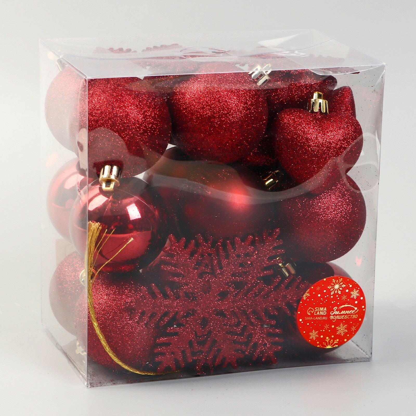 Купить Набор украшений пластик 30 шт "Амур" (16 шаров, 6 сердец, 8 снежинок) красный 4941765