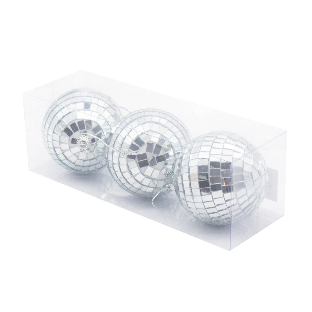 Купить Набор елочных шаров Диско, d 8 см, 3 шт, серебро