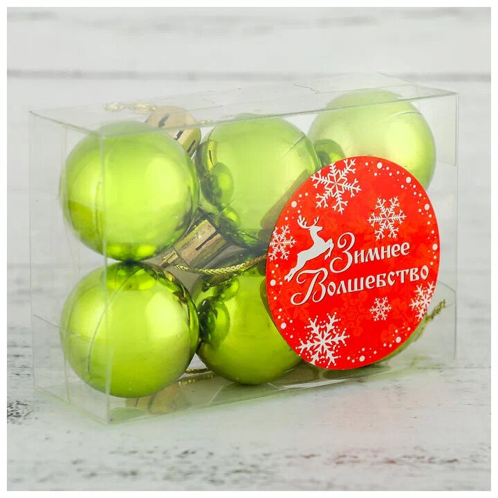 Набор шаров пластик d-3 см, 6 шт "Глянец" зелёный