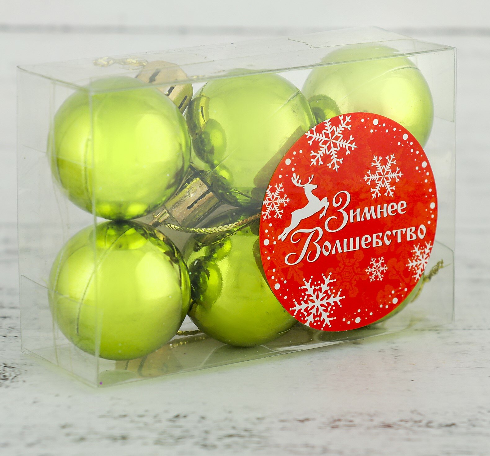 Купить Набор шаров пластик d-3 см, 6 шт "Глянец" зелёный