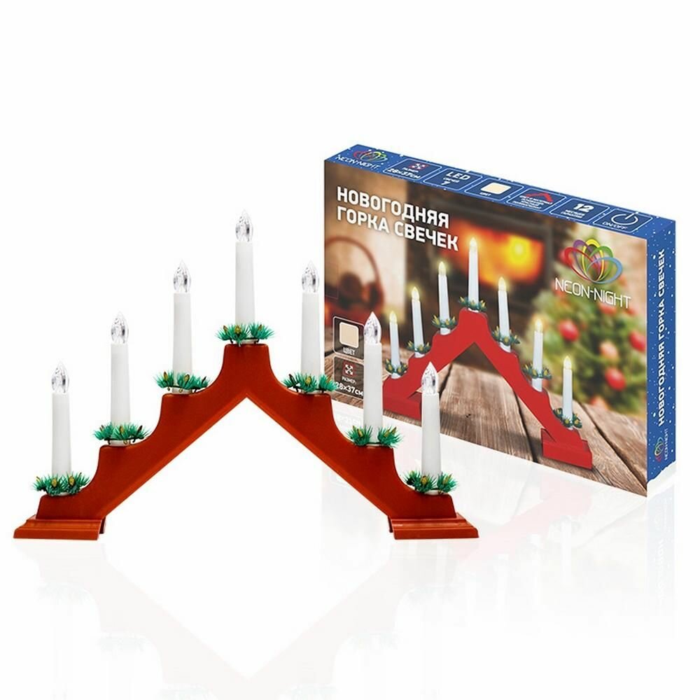 Светильник светодиодный Neon-night "Новогодняя горка" 28х37 см с 7 свечами тепло-белого свечения в белом корпусе, 501-081