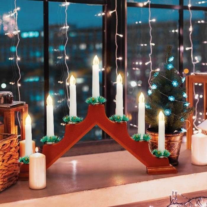 Горка украшение интерьерное, канделябр на 7 свечек светодиодная Neon-Night, теплое белое свечение