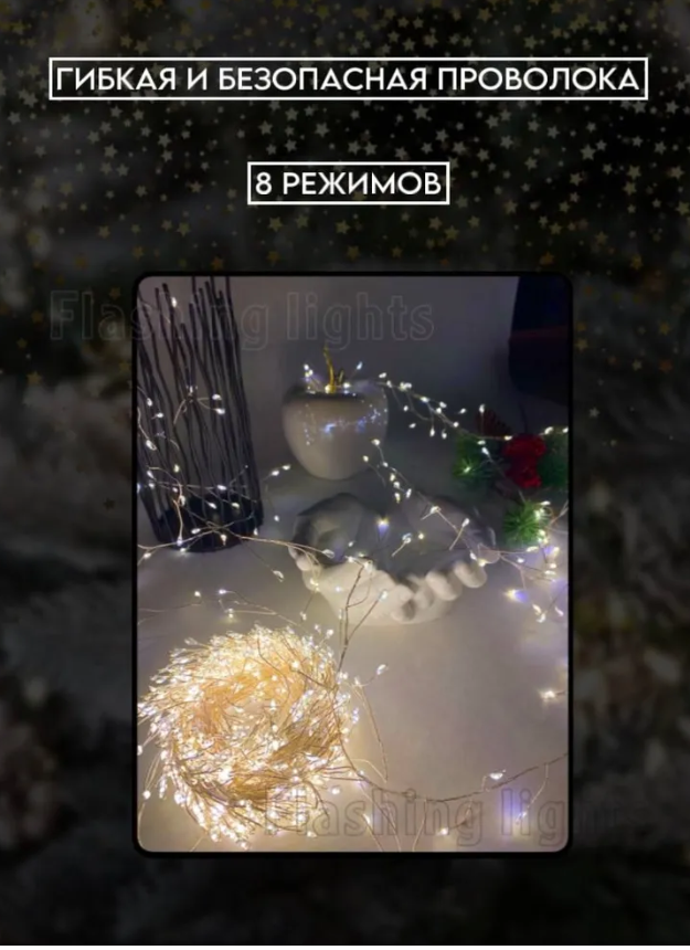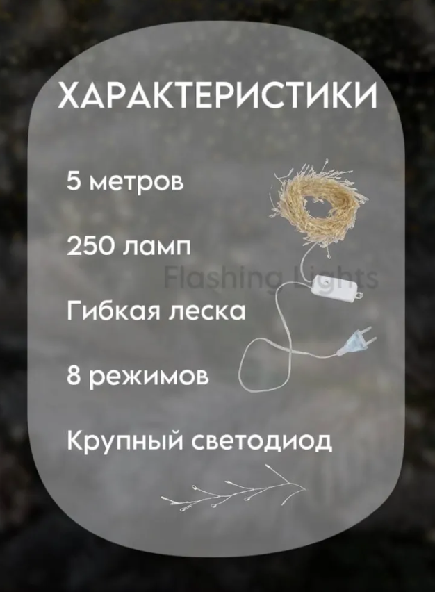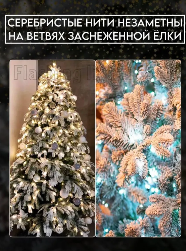 Гирлянда капля росы мишура 5 м теплый белый 250 LED\ Электрогирлянда интерьерная Хвойная лапа\8 режимов работы интересное: