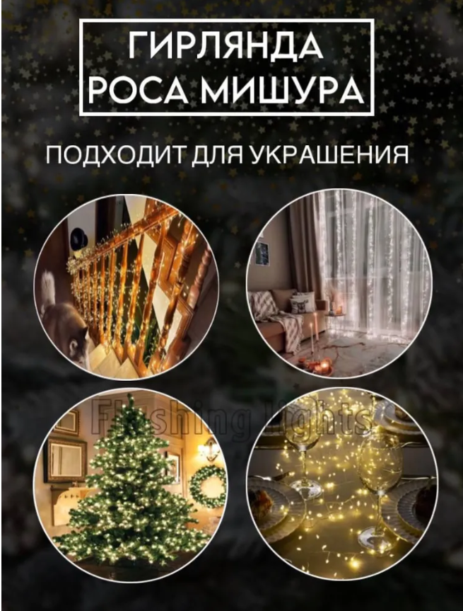 Ниже Вы можете прочитать отзывы на Гирлянда капля росы мишура 5 м теплый белый 250 LED\ Электрогирлянда интерьерная Хвойная лапа\8 режимов работы, ознакомится с подробными характеристиками, посмотреть интересные обзоры и фотографии на Гирлянда капля росы мишура 5 м теплый белый 250 LED\ Электрогирлянда интерьерная Хвойная лапа\8 режимов работы.