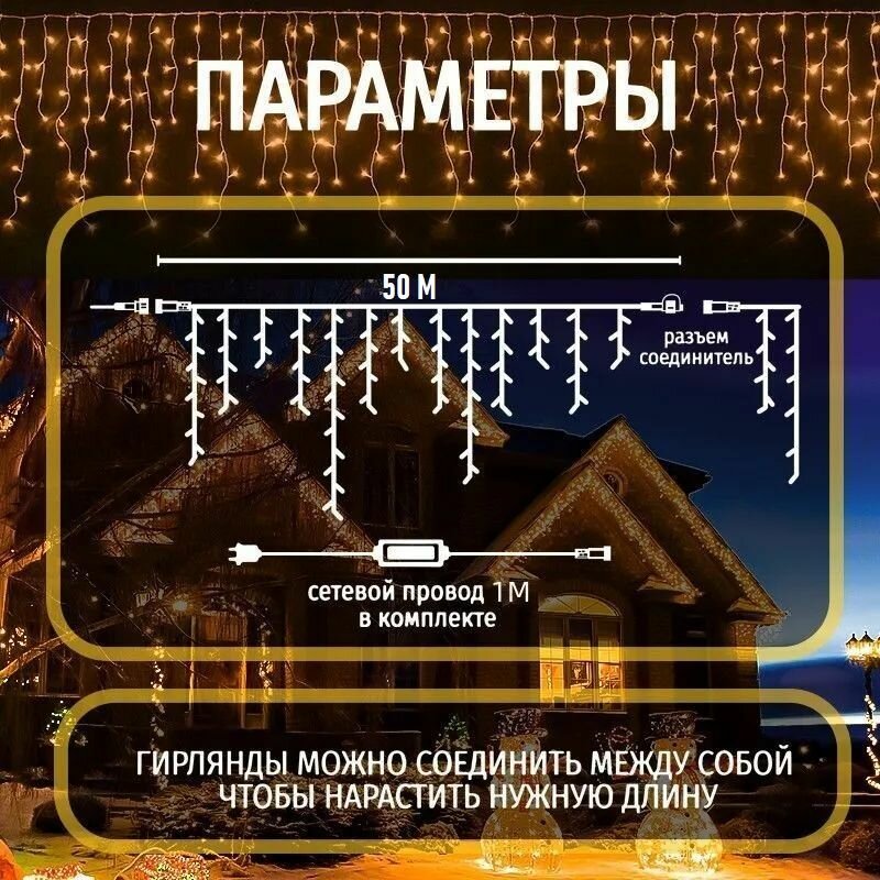 СохранитьГирлянда уличная Бахрома 50м Новогоднее украшение для дома, декор интересное: