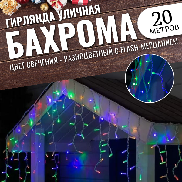 Гирлянда уличная бахрома 20м белый провод / Гирлянда светодиодная, разноцветный интересное: