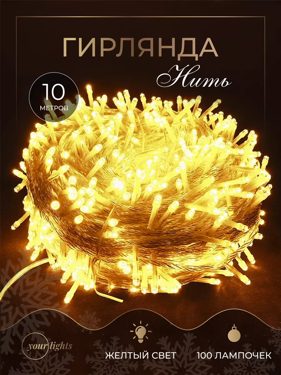 Купить Светодиодная новогодняя гирлянда Нить на елку 10метров