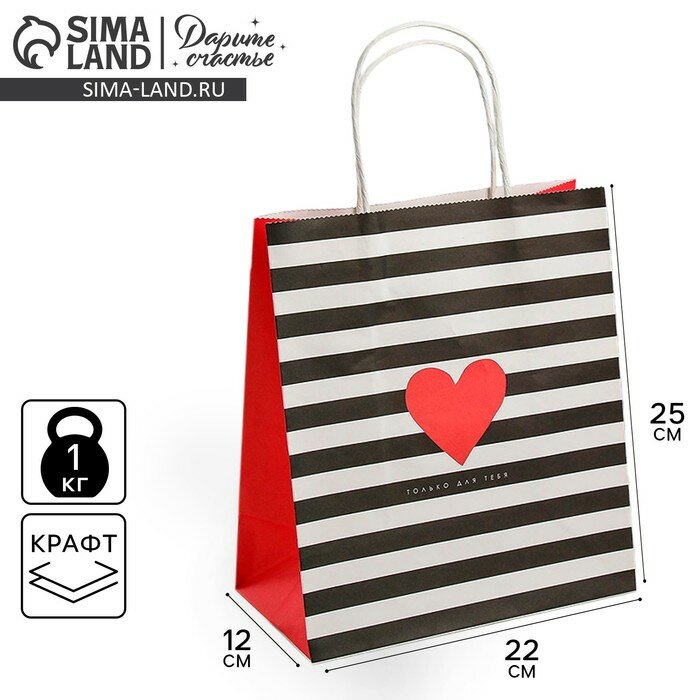 Купить Пакет подарочный крафтовый «С Любовью», 22 × 25 × 12 см
