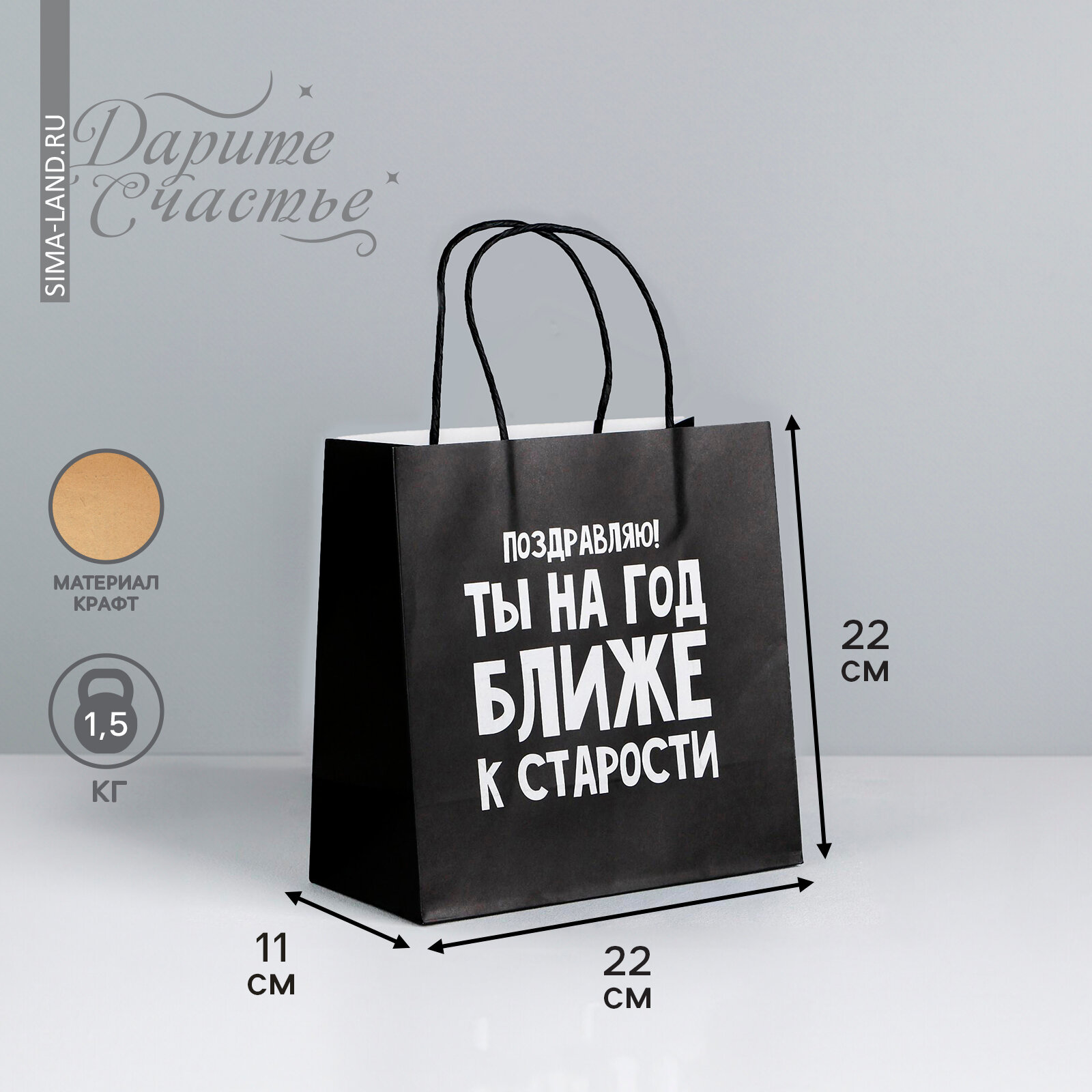 Купить Пакет подарочный «На год ближе к старости», 22 × 22 × 11 см