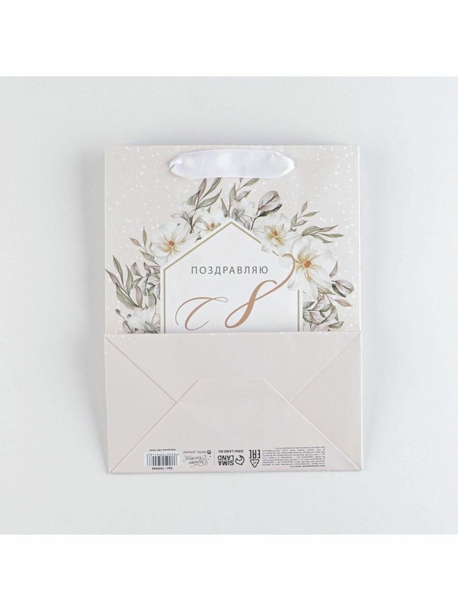 Пакет подарочный ламинированный M 26 х 30 х 9 см, «Самой нежной», вертикальный, для упаковки подарка