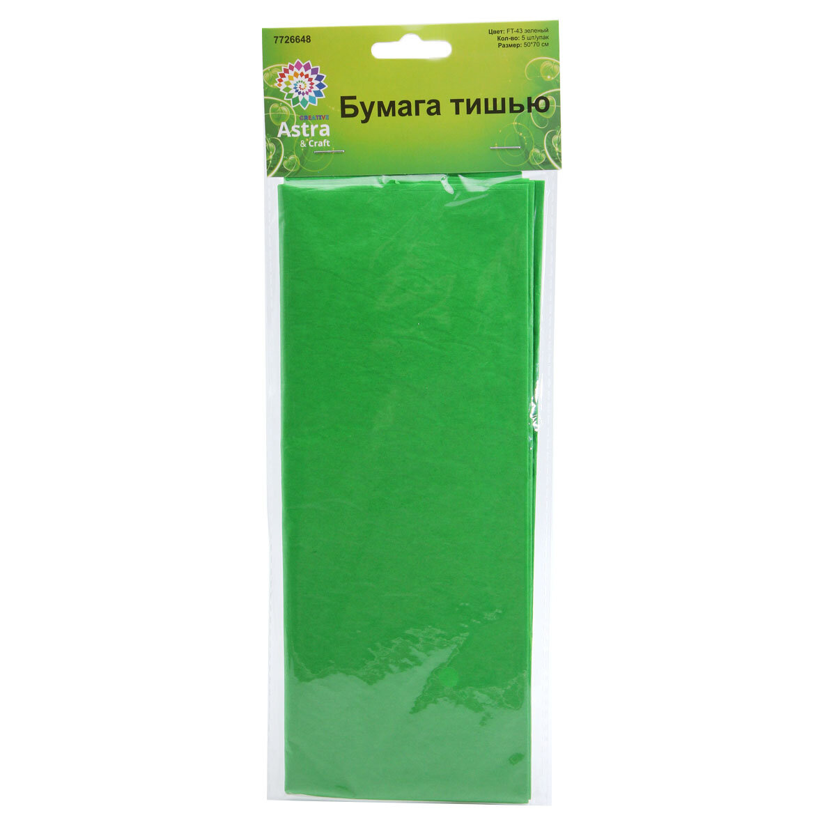 Купить Бумага тишью Astra&Craft, 50*70 см, 20 г/м, 5 шт/упак (FT-43 зеленый)