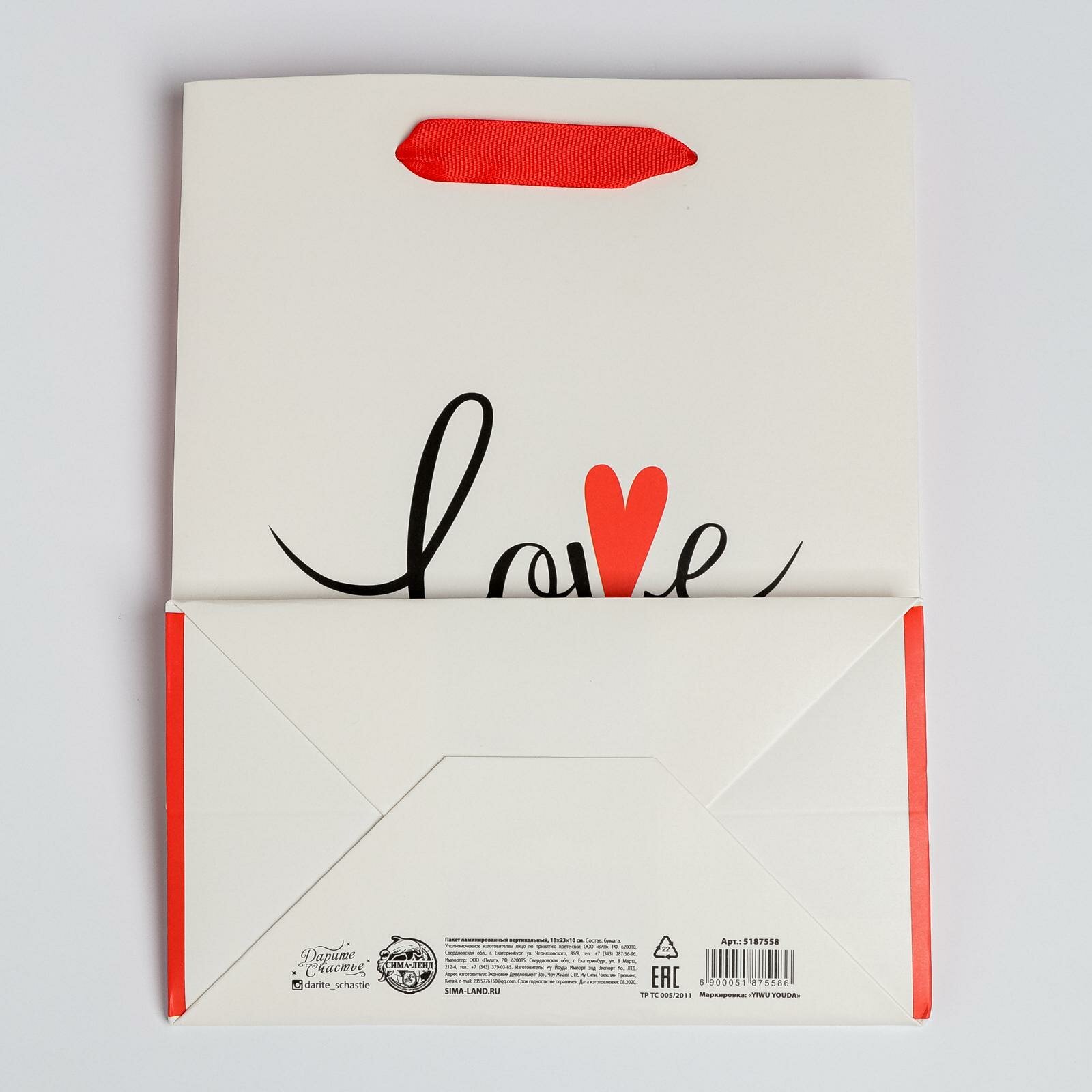 Купить Пакет подарочный «Love», MS 18 × 23 × 10 см