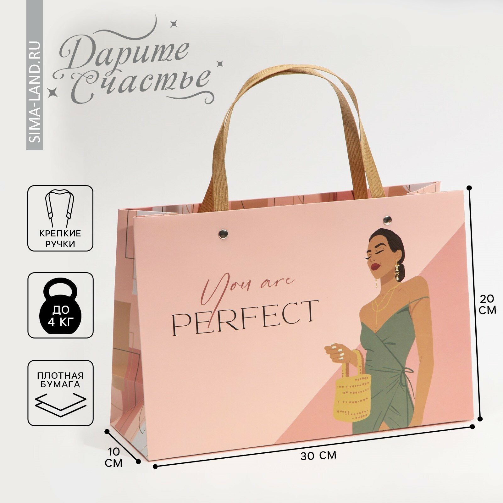Купить Пакет подарочный «Ты идеальна», 30 × 20 × 10 см