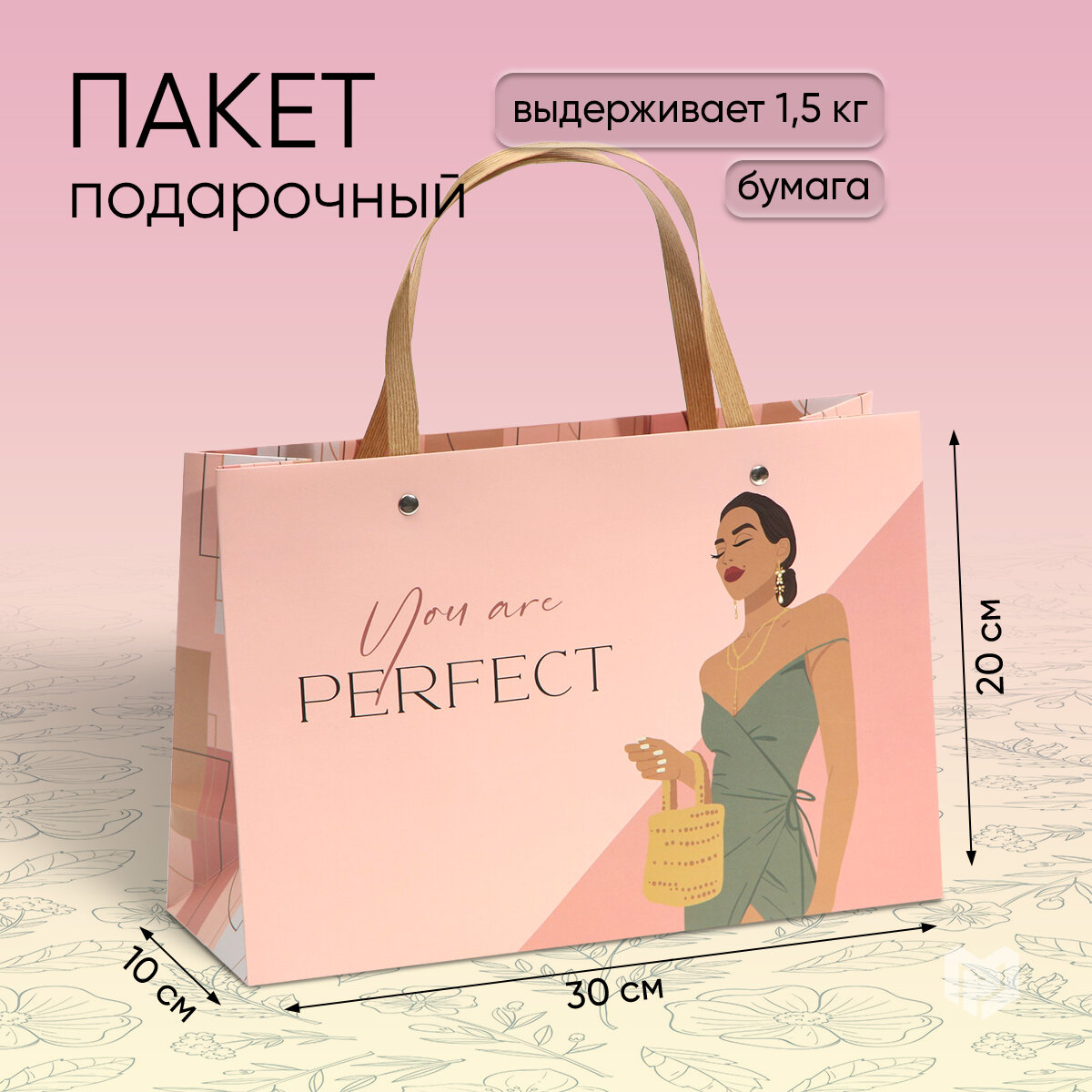 Пакет подарочный «Ты идеальна», 30 × 20 × 10 см интересное: