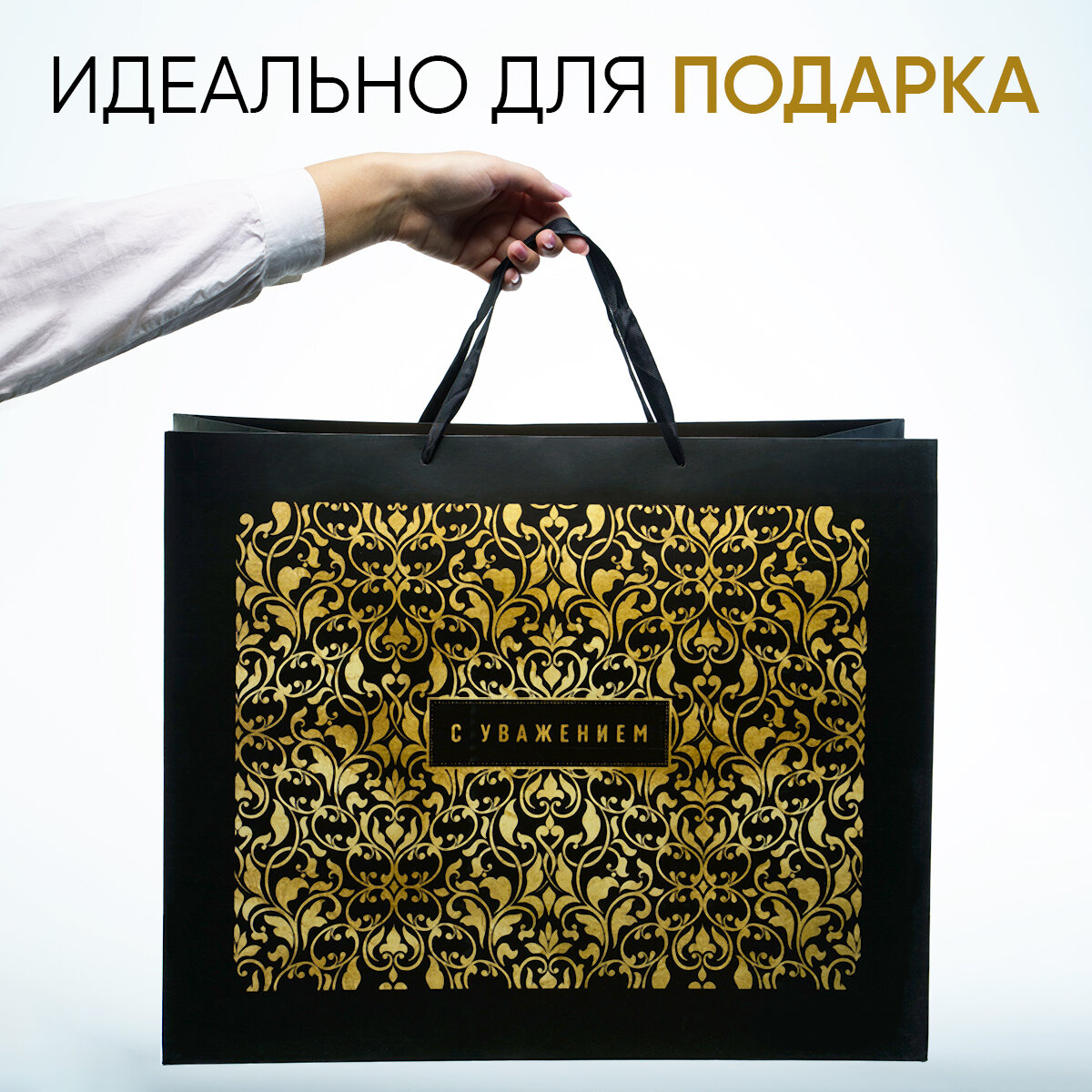 Пакет подарочный ламинированный «С Уважением» 49 × 40 × 19 см интересное: