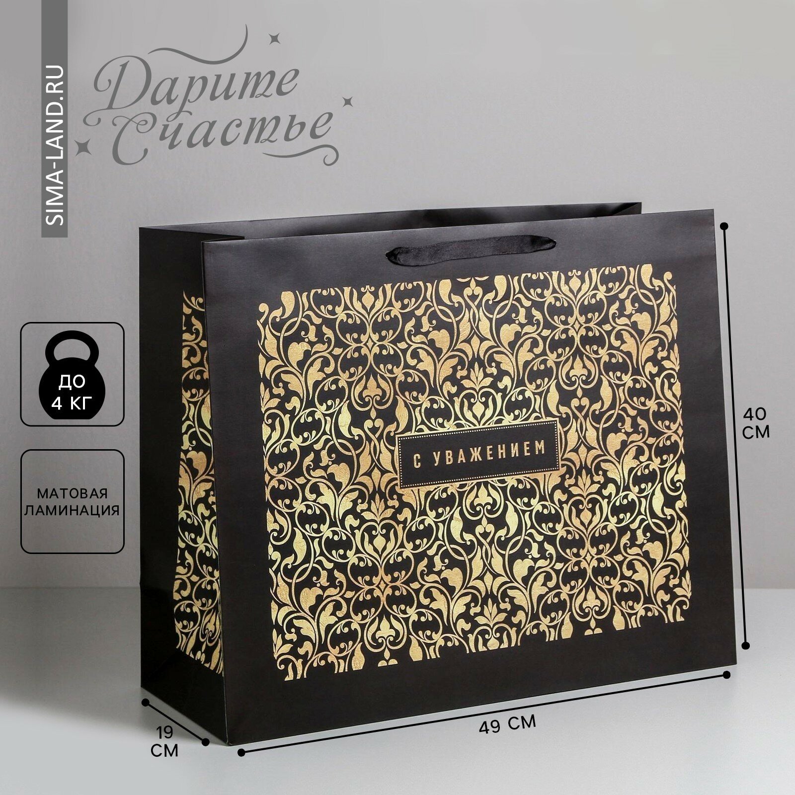 Купить Пакет подарочный ламинированный «С Уважением» 49 × 40 × 19 см