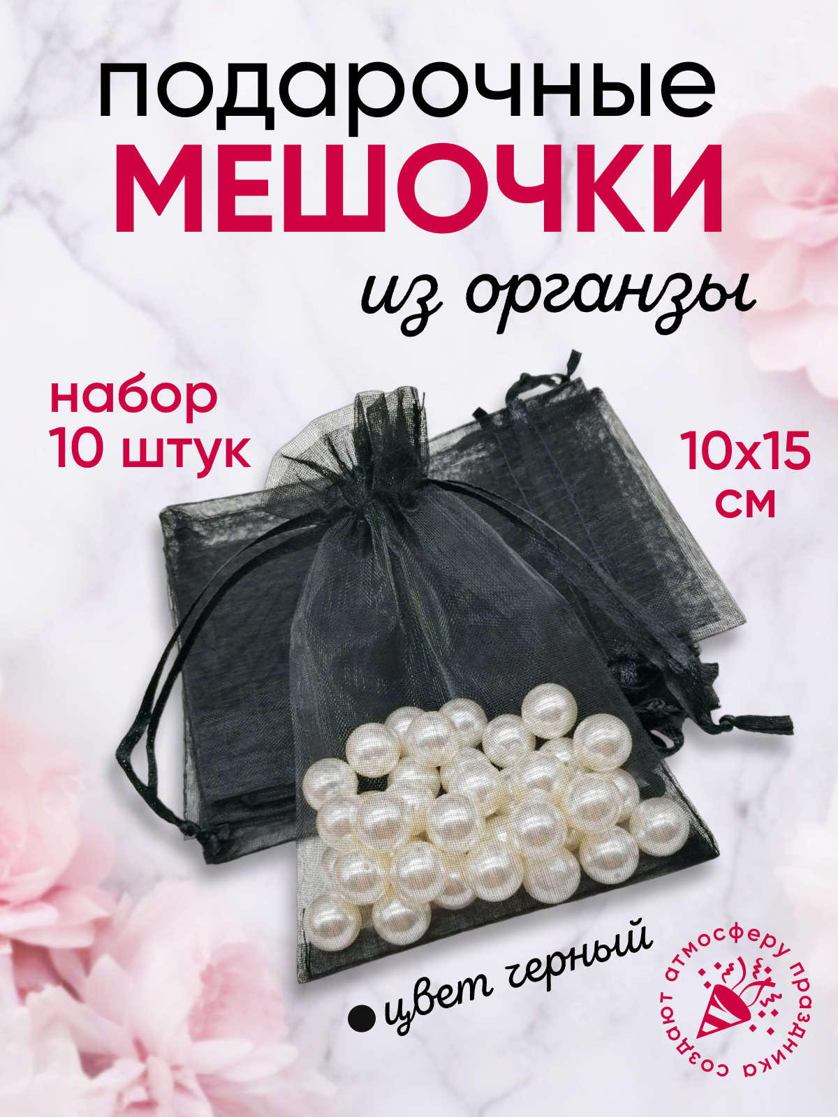 Подарочные мешочки из органзы 10x15 см набор 10 шт черные / прозрачные интересное: