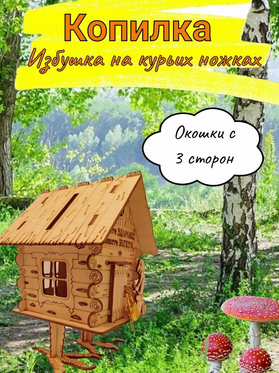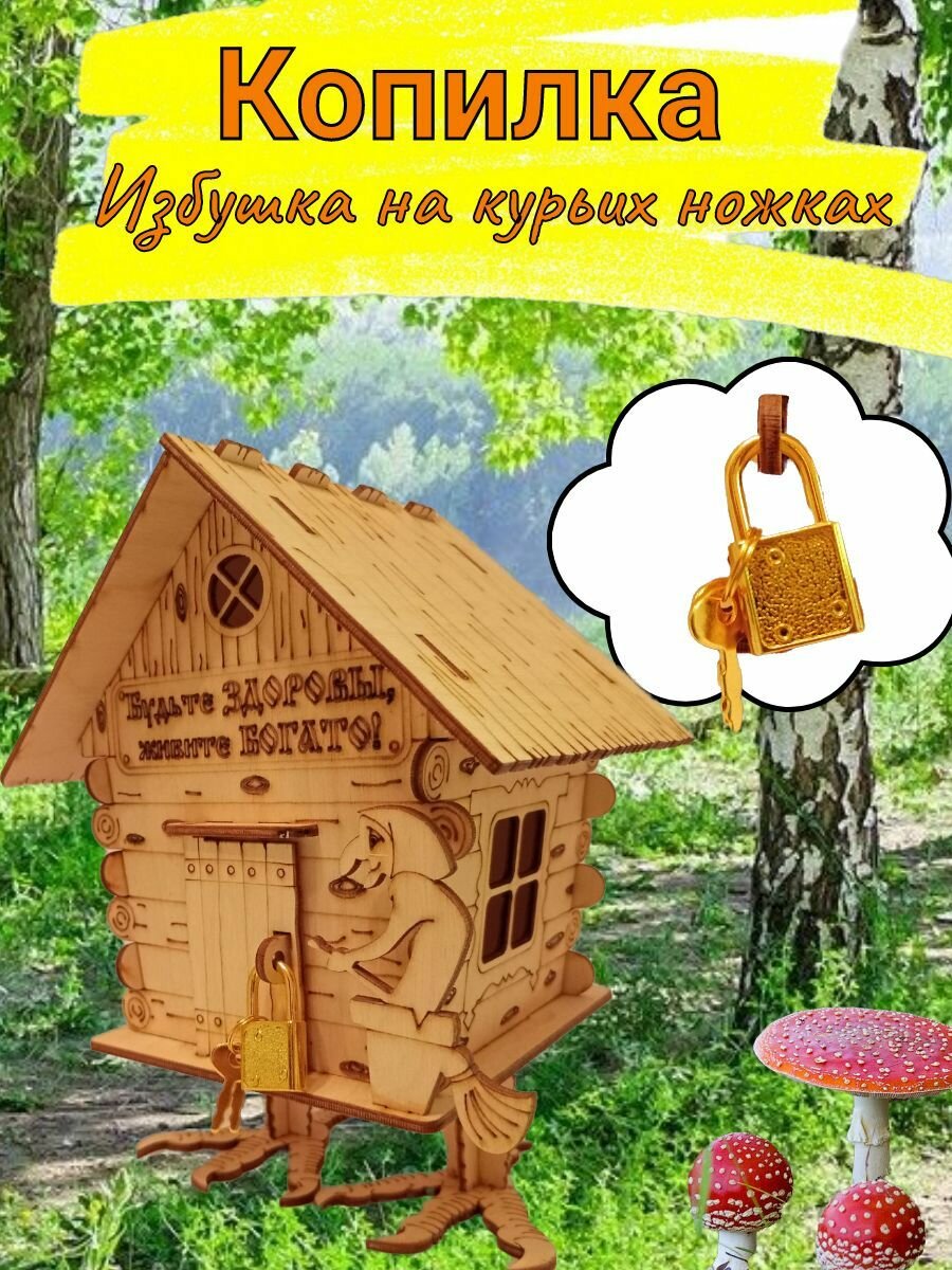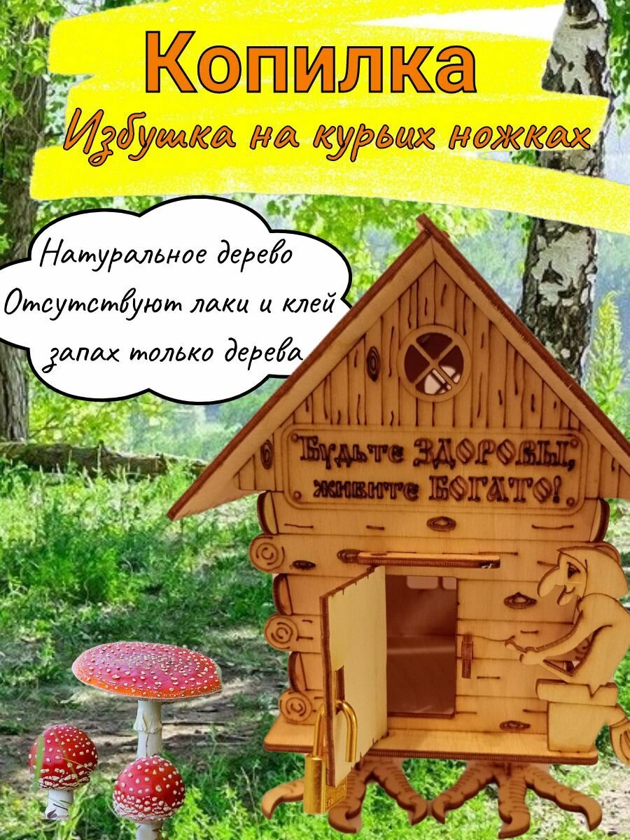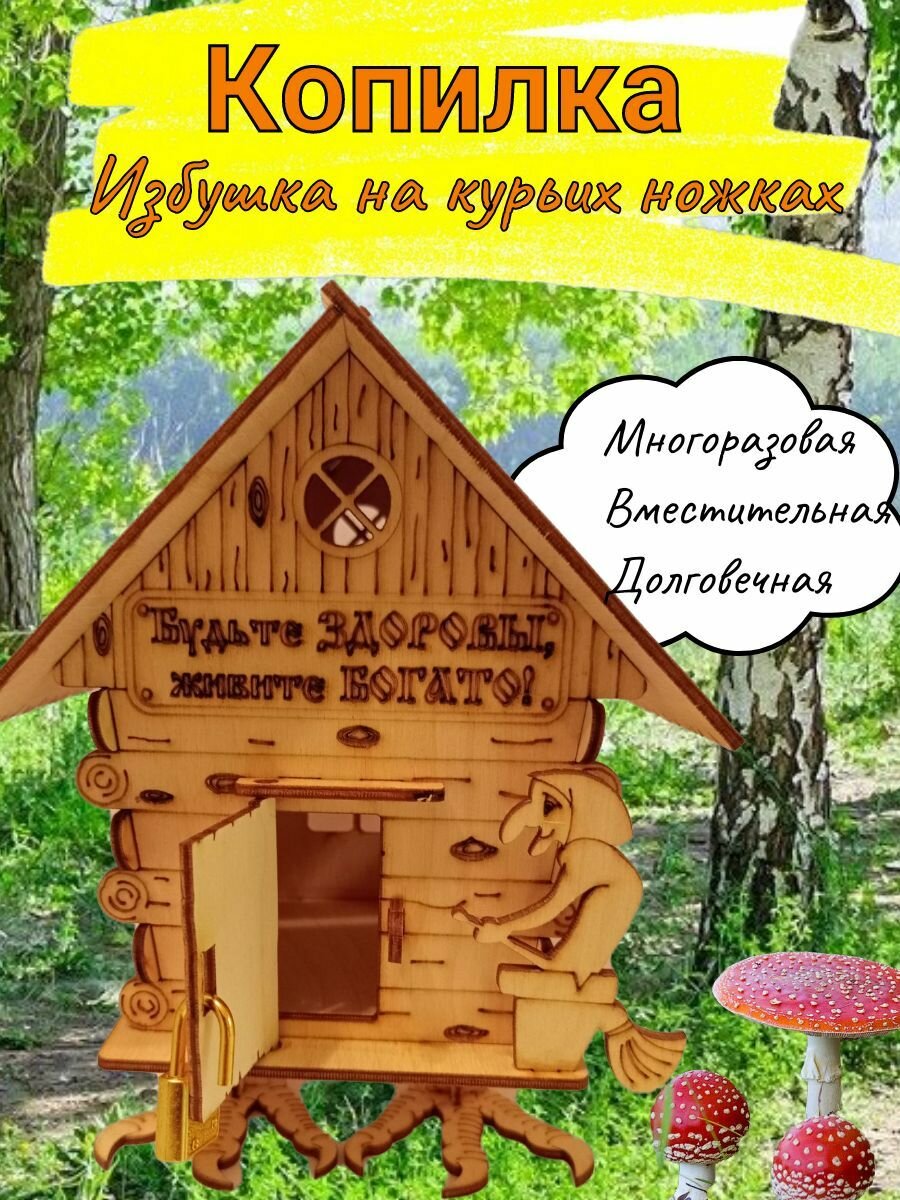 Копилка "Избушка на курьих ножках" сказочная, Домик Бабушки Яги, среднего размера 21х14,5х17см интересное: