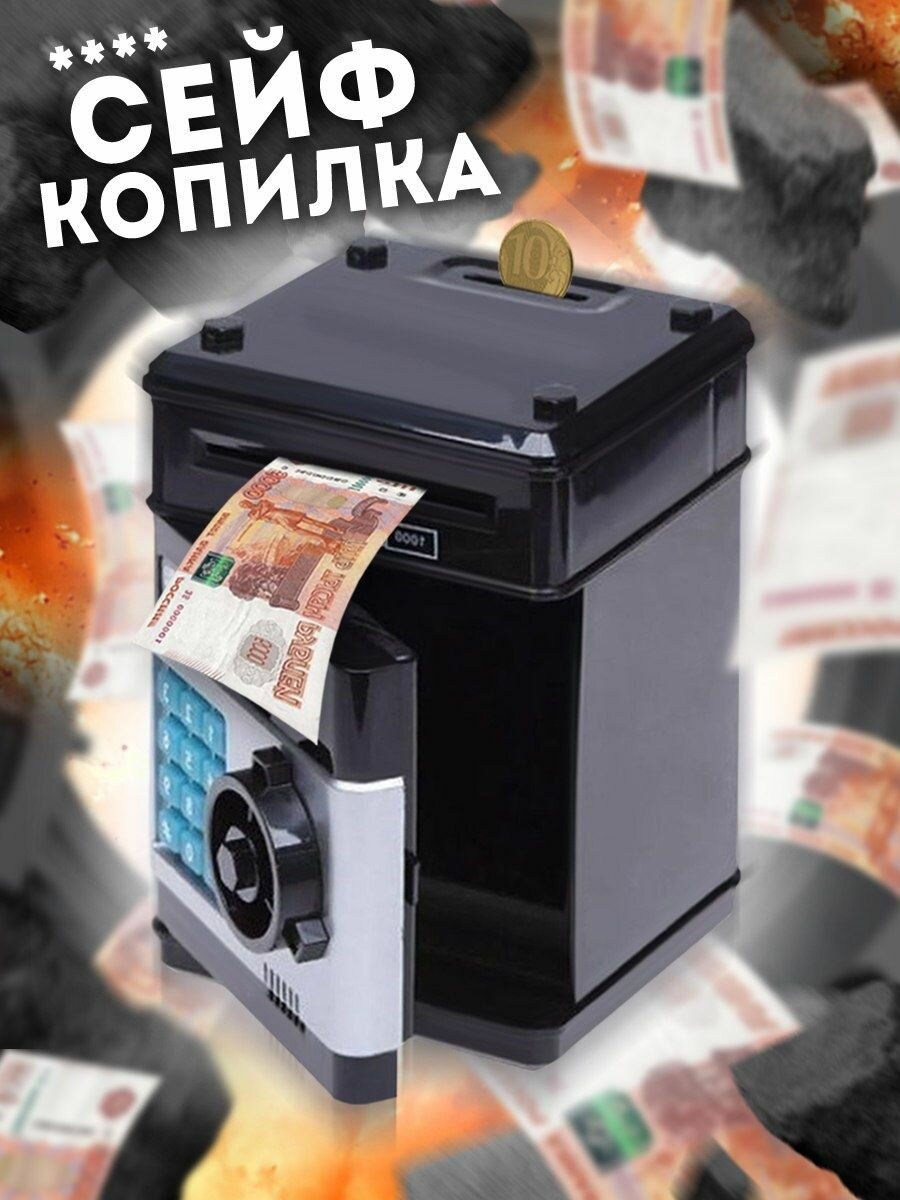 Копилка сейф для денег детская / Игрушка-копилка Сейф со световыми и звуковыми эффектами чёрный интересное: