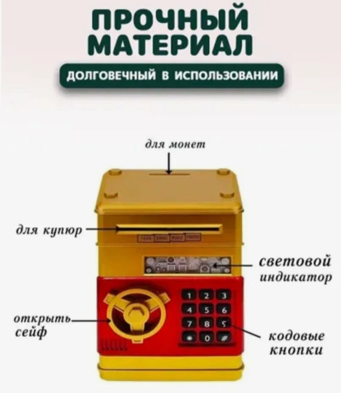 Ниже Вы можете прочитать отзывы на Копилка сейф для денег детская / Игрушка-копилка Сейф со световыми и звуковыми эффектами золотой, ознакомится с подробными характеристиками, посмотреть интересные обзоры и фотографии на Копилка сейф для денег детская / Игрушка-копилка Сейф со световыми и звуковыми эффектами золотой.