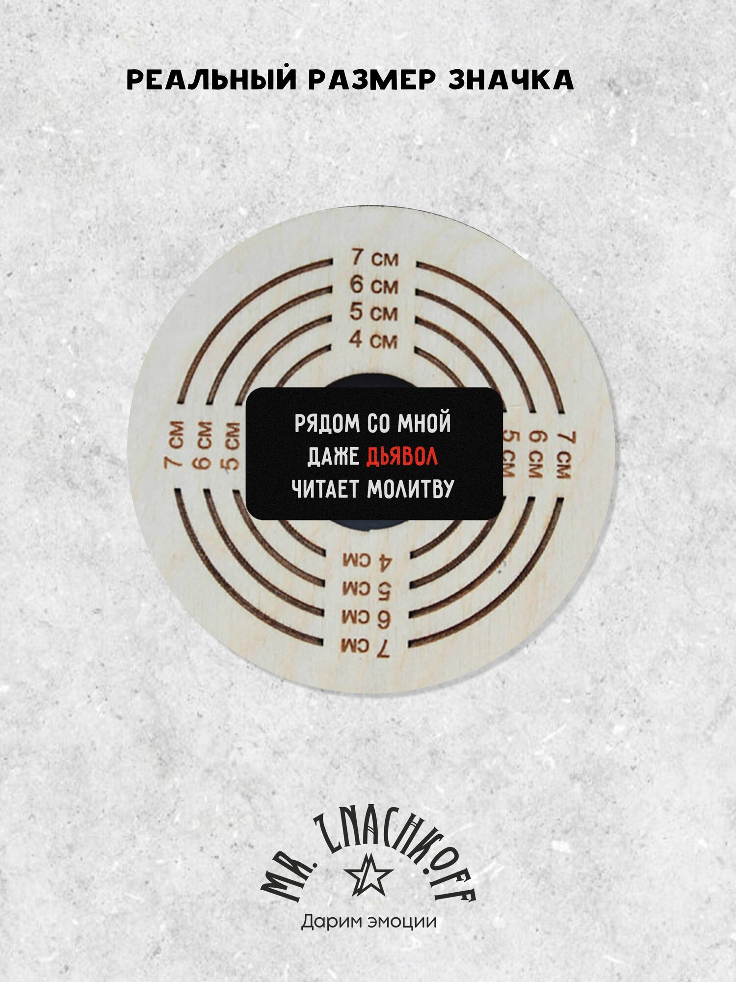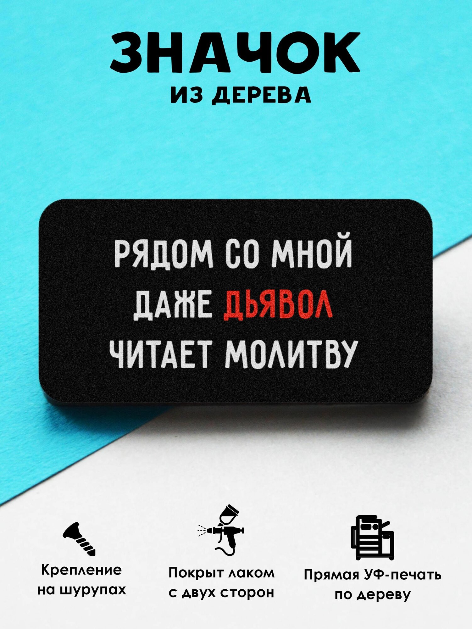 Прикольный деревянный значок на рюкзак Дьявол интересное:
