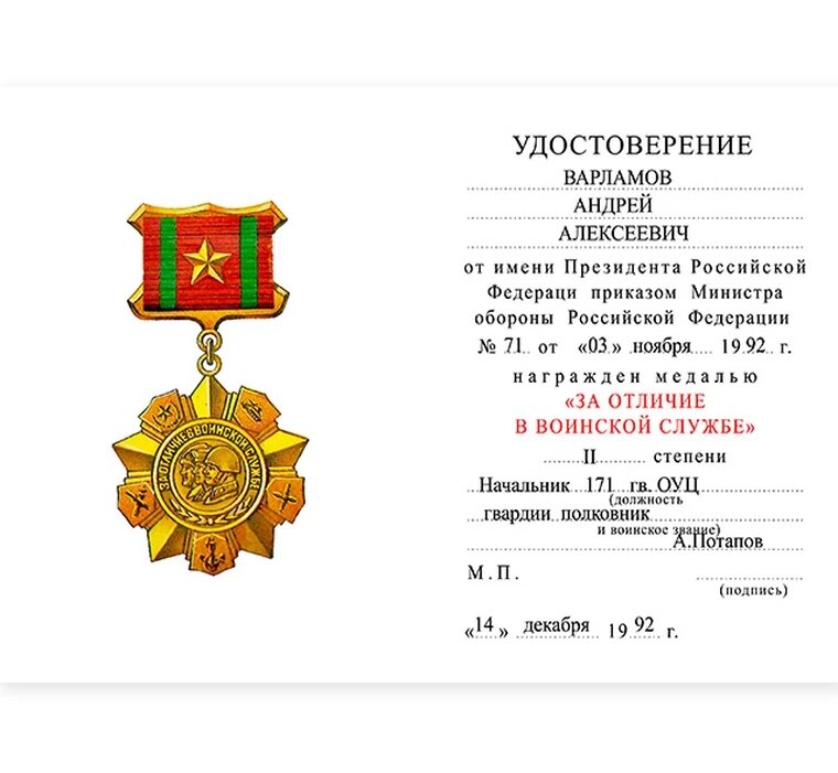 Удостоверение За отличие в воинской службе 2 степени 1992, копия арт. 20-17903 интересное: