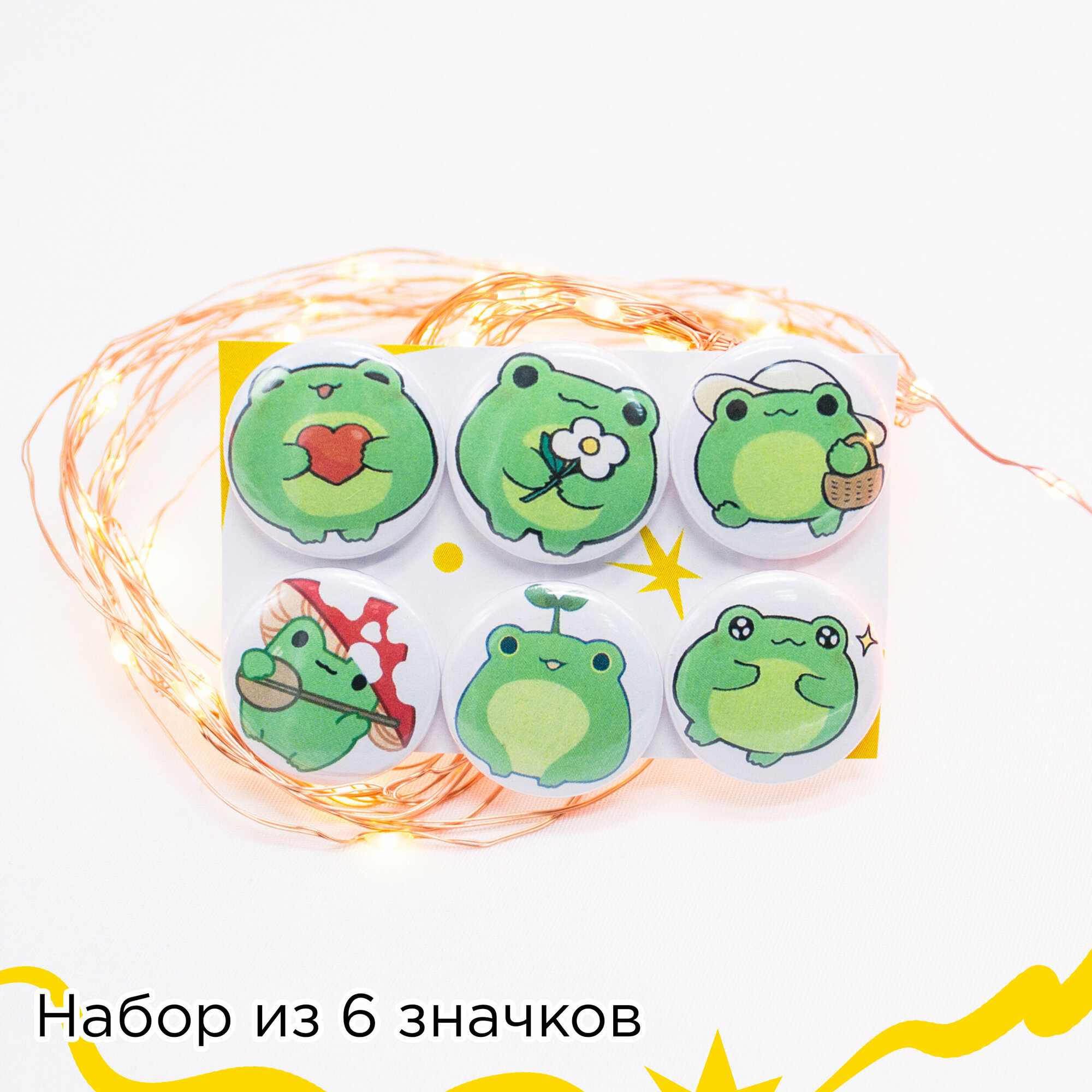 Купить Набор значков Милые лягушки, 6 шт., 25 мм