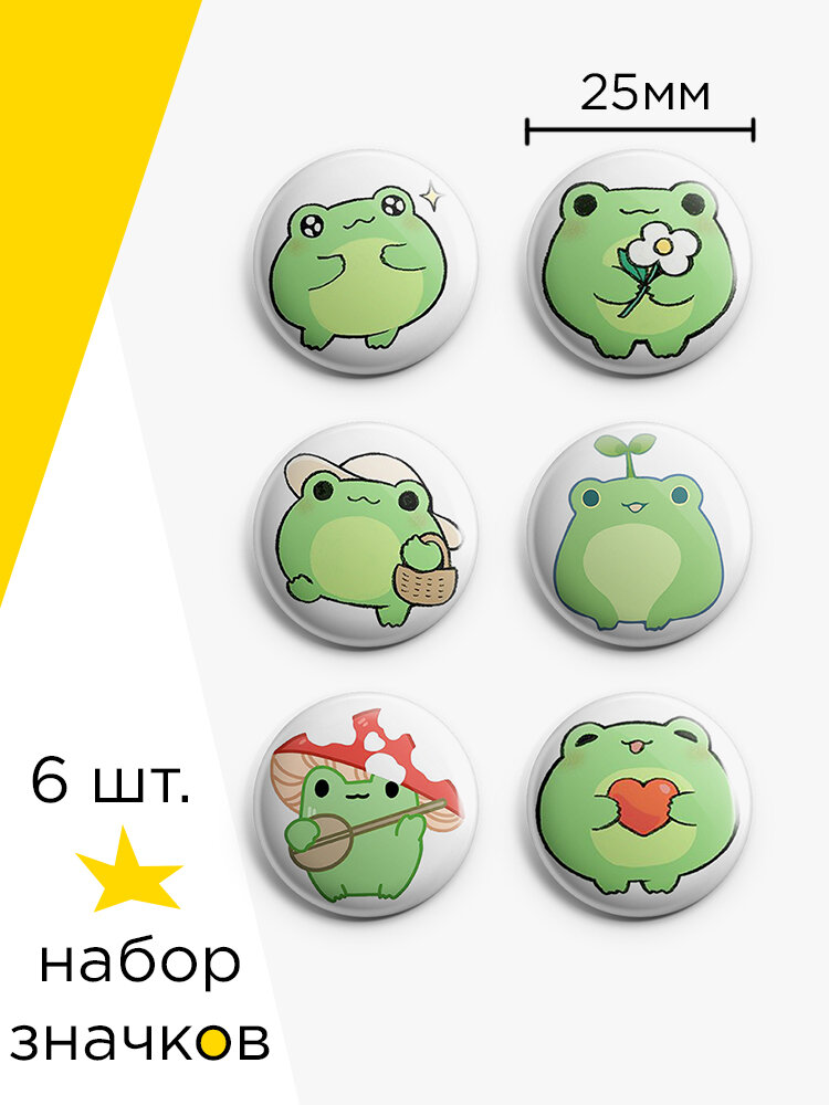 Набор значков Милые лягушки, 6 шт., 25 мм интересное: