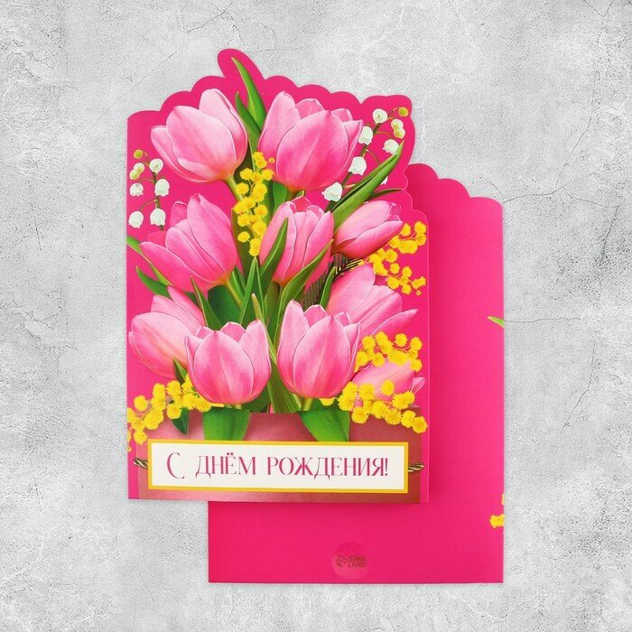 Открытка С Днeм Рождения, цветы, 19 x 29 см 5 шт интересное: