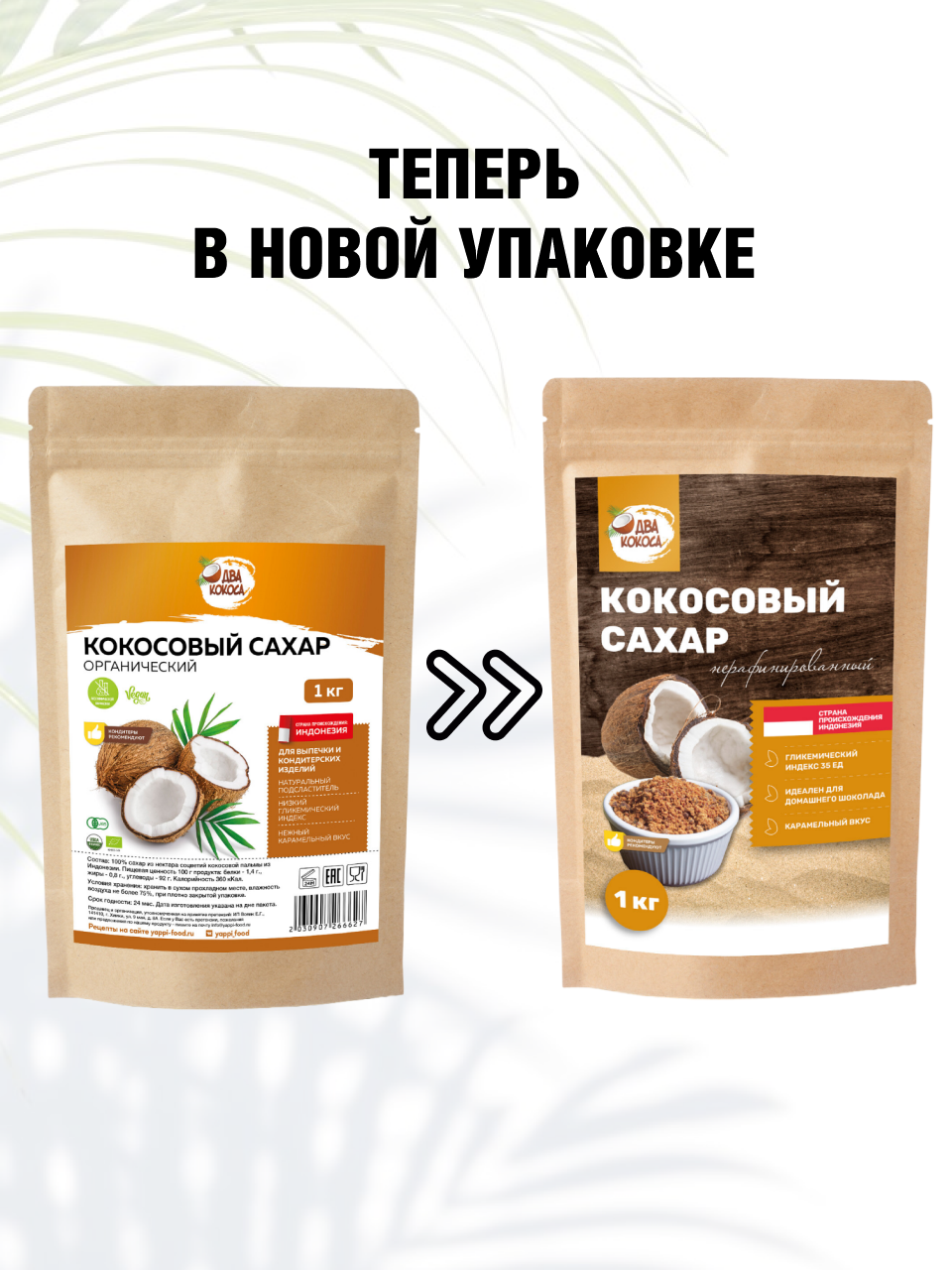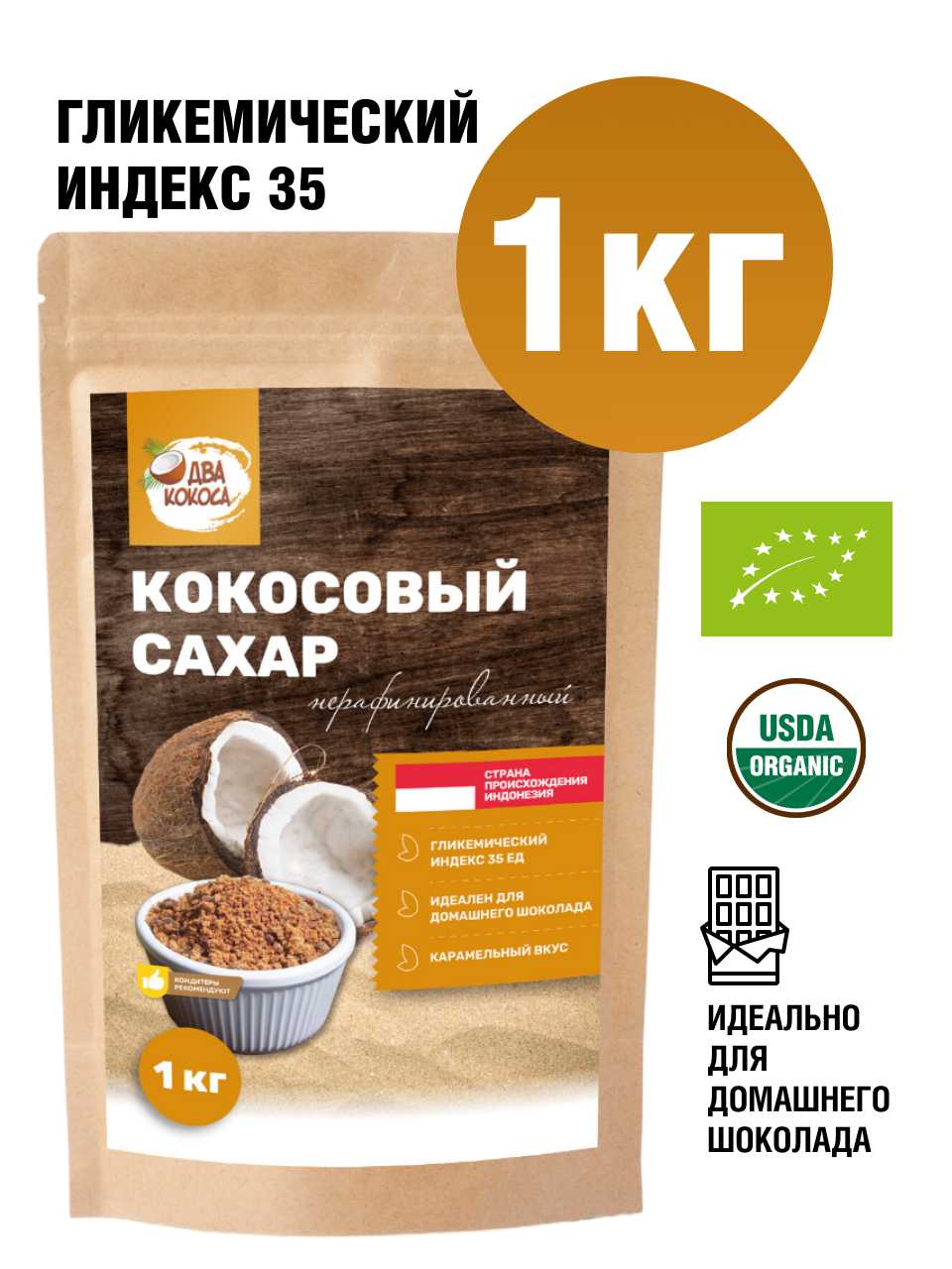 Кокосовый сахар "Два кокоса" нерафинированный, 1 кг интересное: