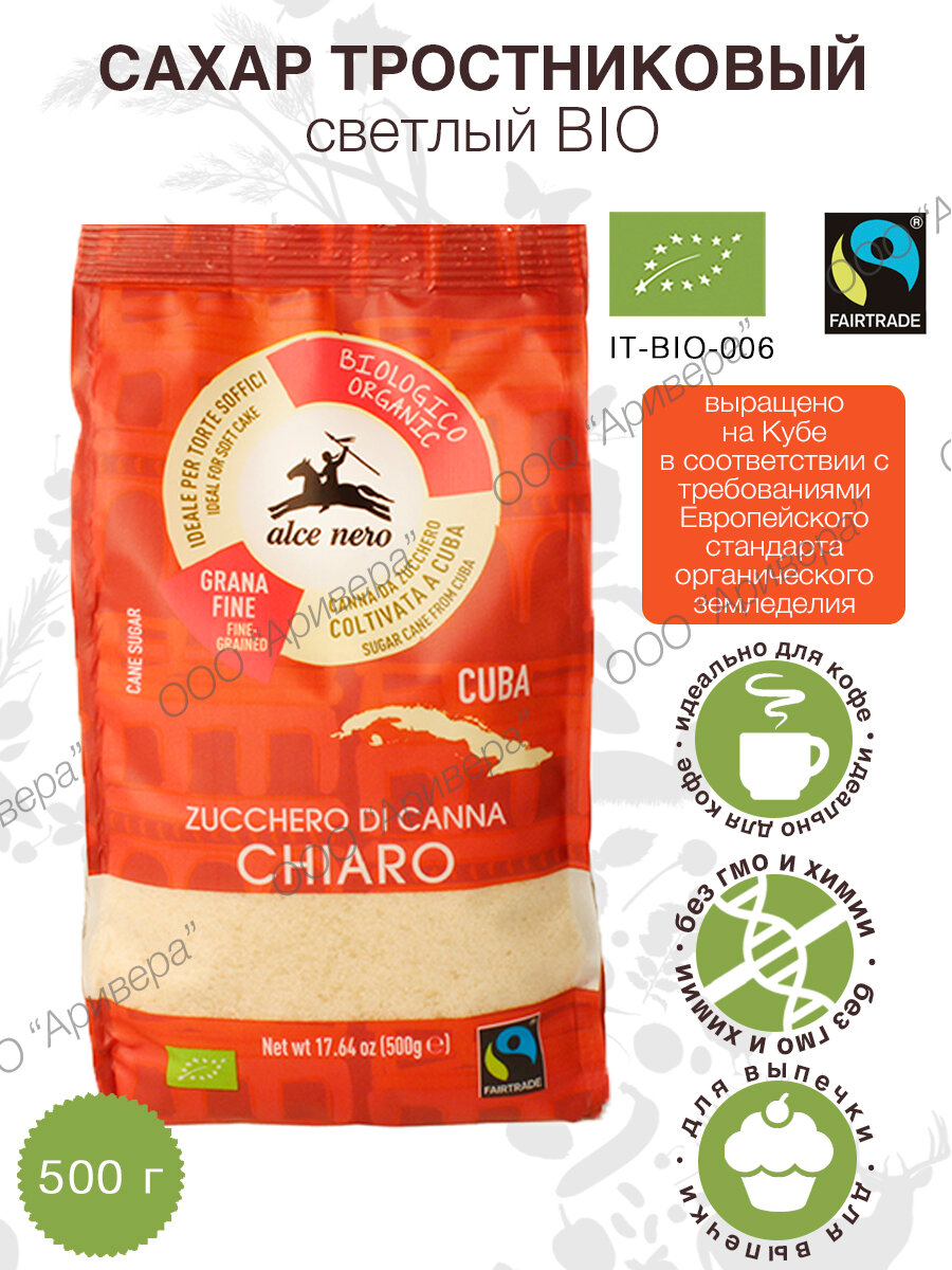 Alce Nero Сахар-песок тростниковый светлый БИО, 500 г интересное:
