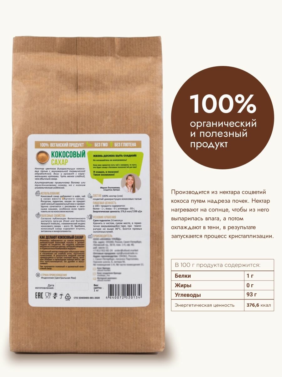 Органический кокосовый сахар UFOOD, 1 кг интересное:
