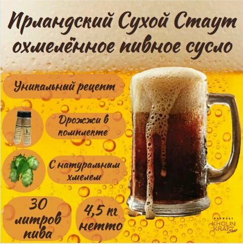 Ирландский Сухой Стаут. 4,5 кг. Охмелённый солодовый концентрат. Набор для приготовления 30 литров пива. интересное: