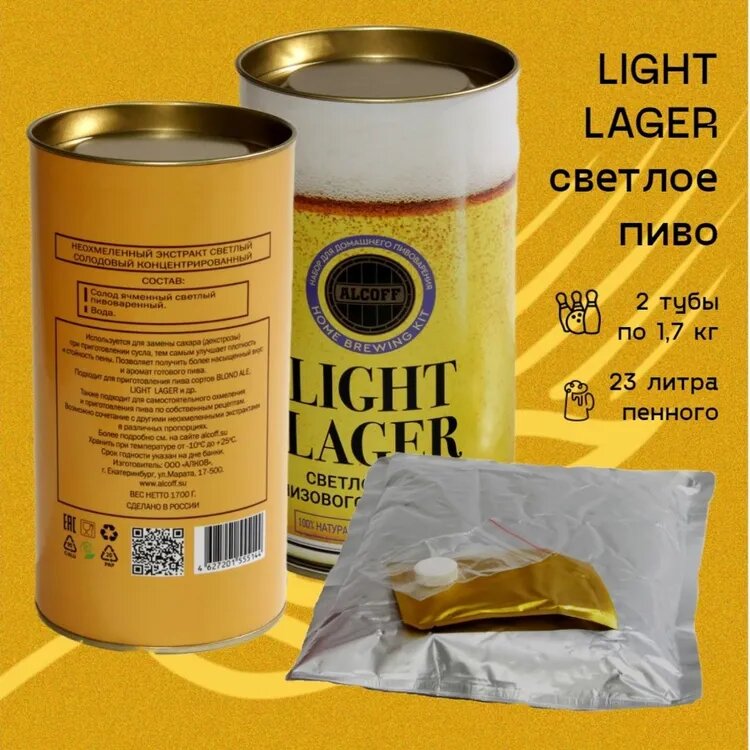 Набор солодовых экстрактов Alcoff "Light Lager" (светлый лагер) 3,4 кг интересное: