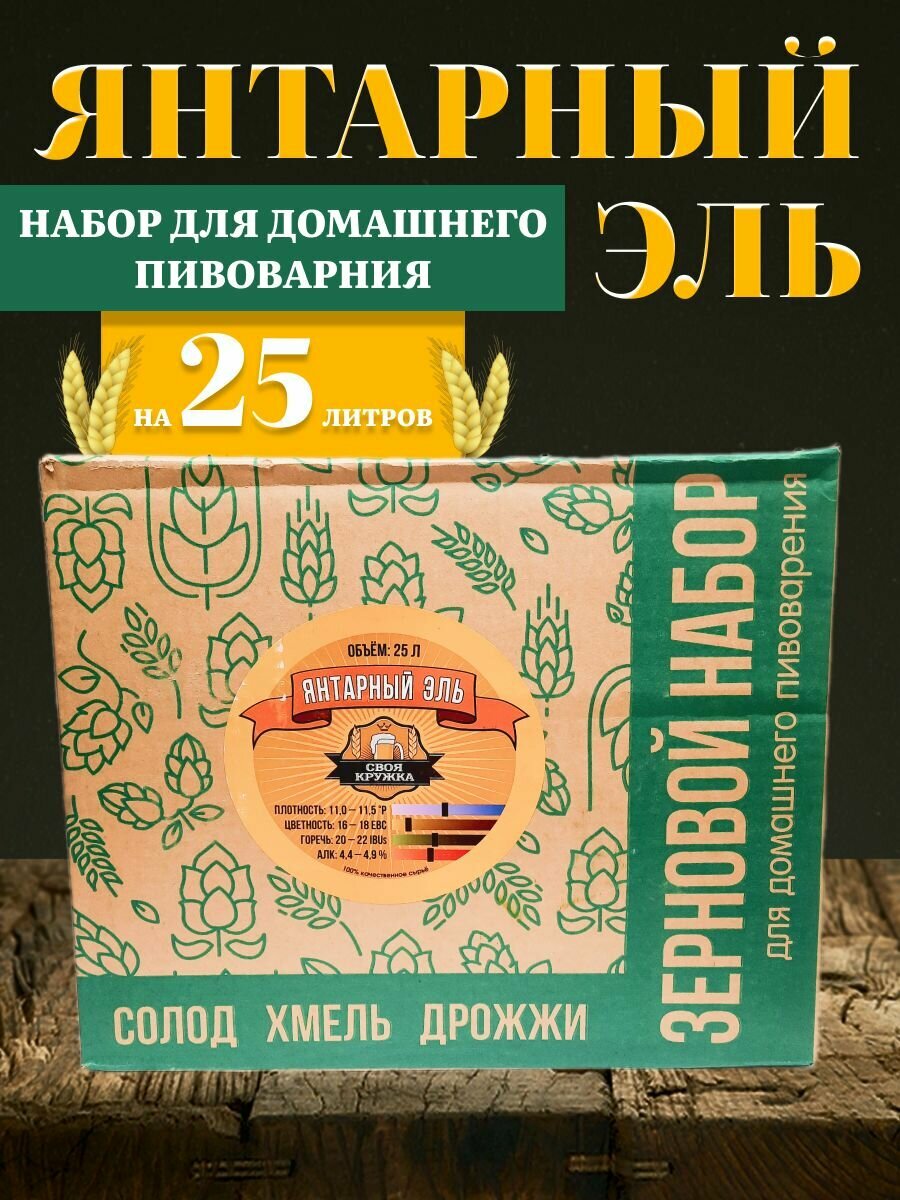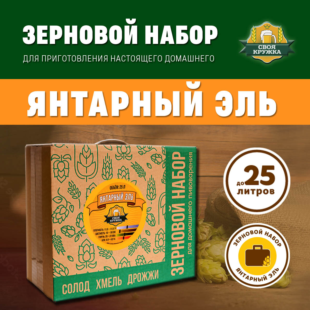 Зерновой набор Янтарный Эль для приготовления 25 литров пива интересное:
