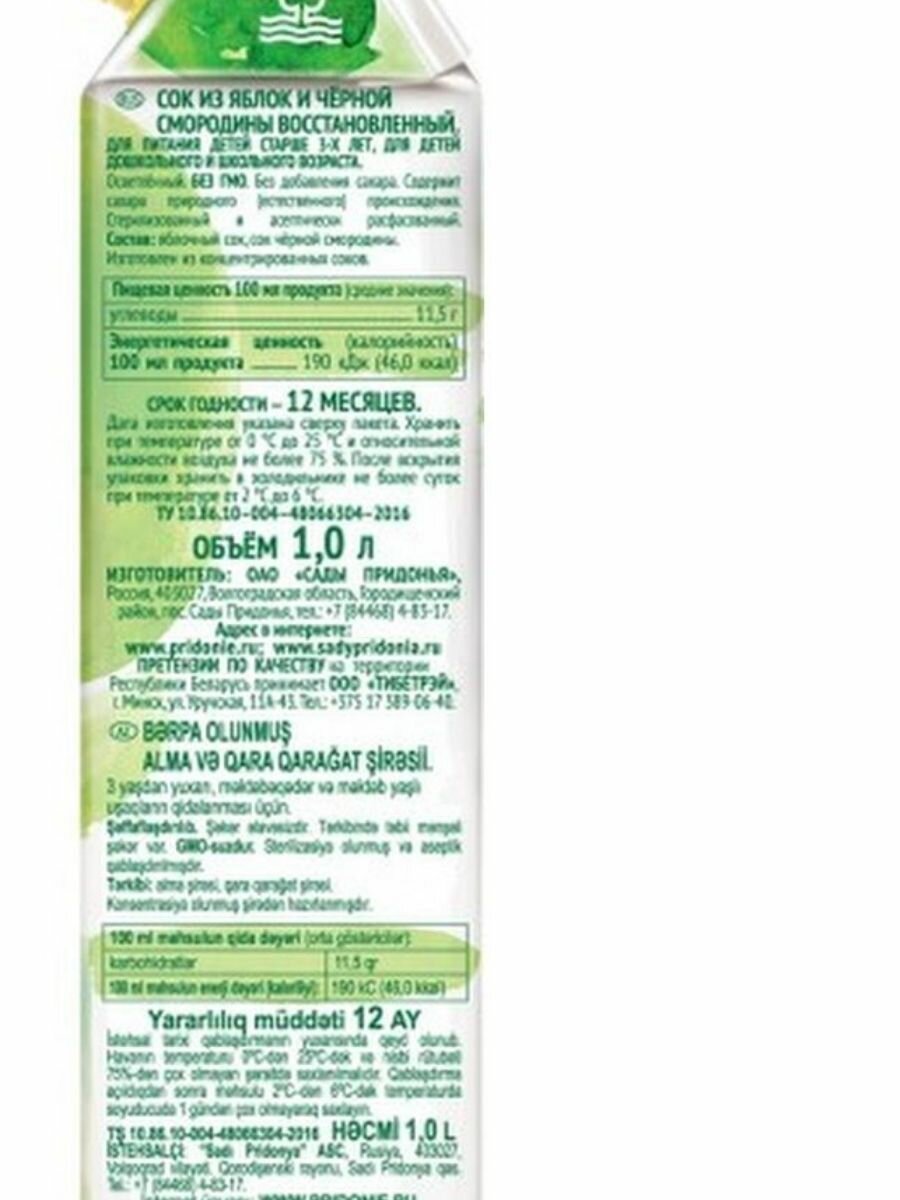 Сок Сады Придонья Яблоко-Черная смородина, с крышкой, без сахара, 1 л, "12штук интересное: