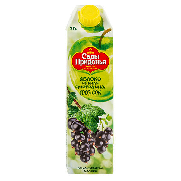 Сок Сады Придонья из яблок и чёрной смородины осветленный восстановленный 1 л