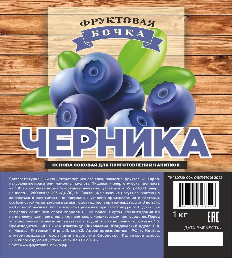 Сок концентрированный Черника, Фруктовая Бочка, 1кг. интересное: