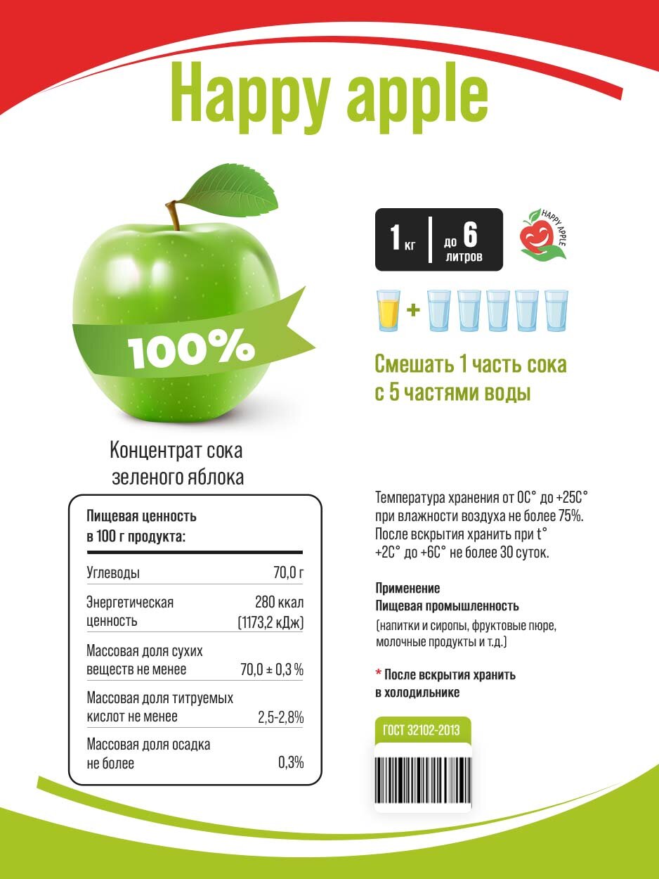 Сок концентрированный Яблоко зелёное 1 кг, кисл. 2,8% (Happy Apple) интересное: