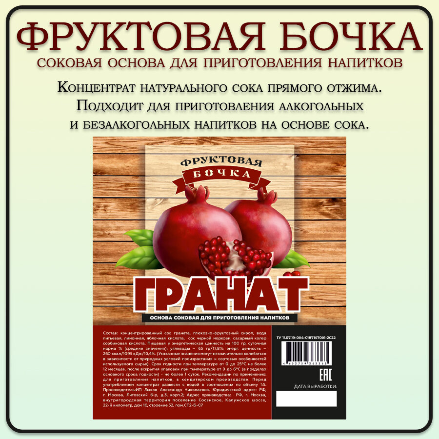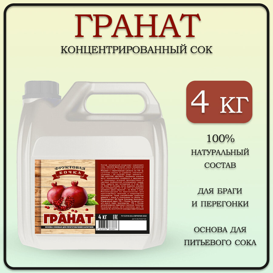 Сок концентрированный гранатовый, Фруктовая бочка 4 кг интересное: