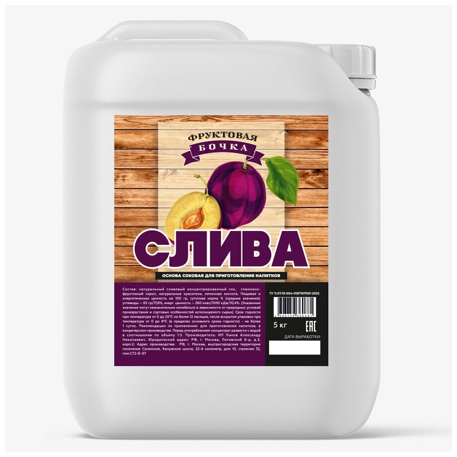 Сок концентрированный сливовый/Концентрат сока натуральный, слива, 5 кг/Фруктовая бочка интересное: