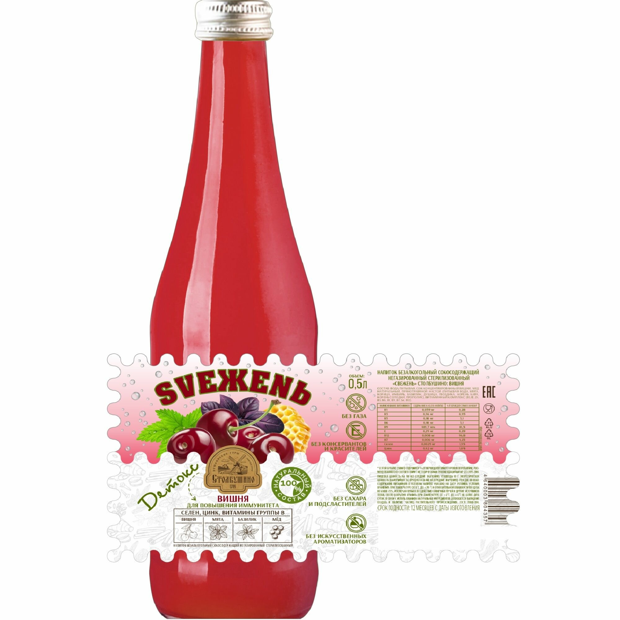 СохранитьСтолбушино Свежень, низкоуглеводный сокосодержащий напиток, вишневый с мёдом и пряностями, без сахара, 0,5л интересное: