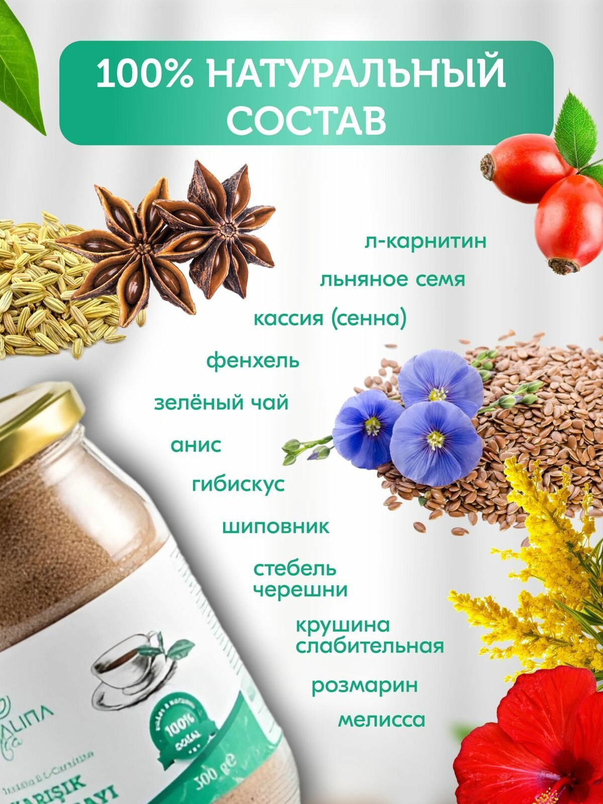 | Состав | L карнитин Мелисса Розмарин анис фенхель сенна черешня льняное семя зеленый чай облепиха аромат шиповника |