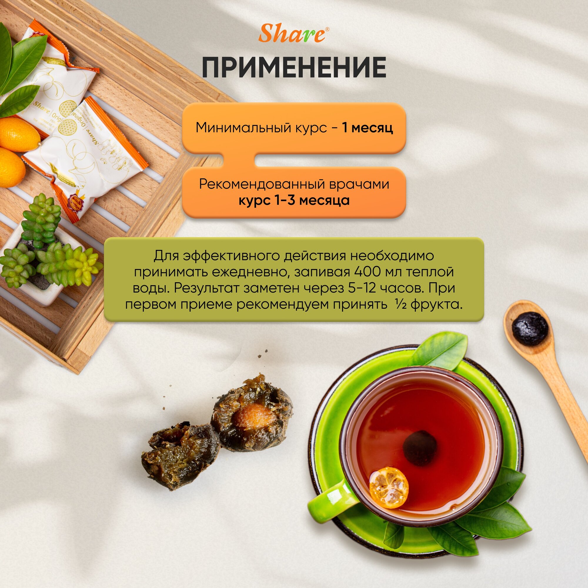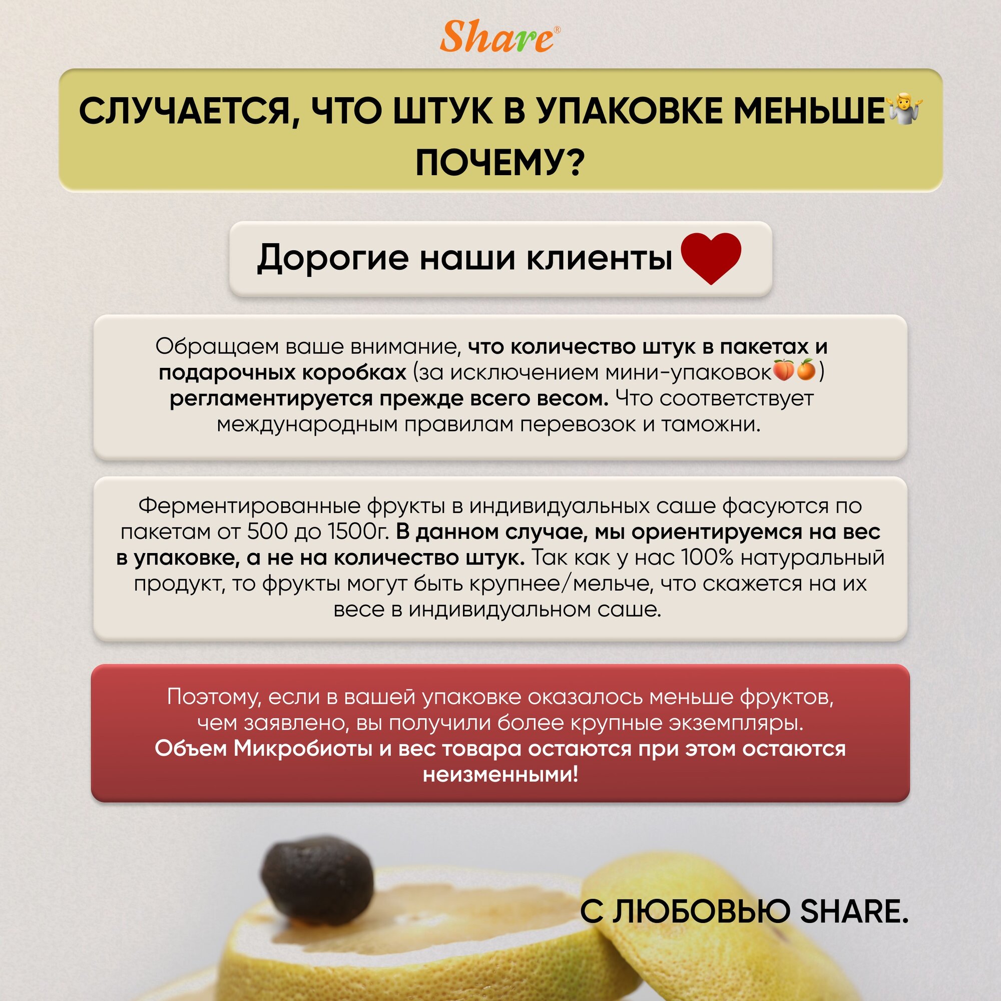 | Состав набора | 7 шт Share Original Ферментированный абрикос (PRUNUS MUME) в индивидуальной упаковке, Детокс для ЖКТ |